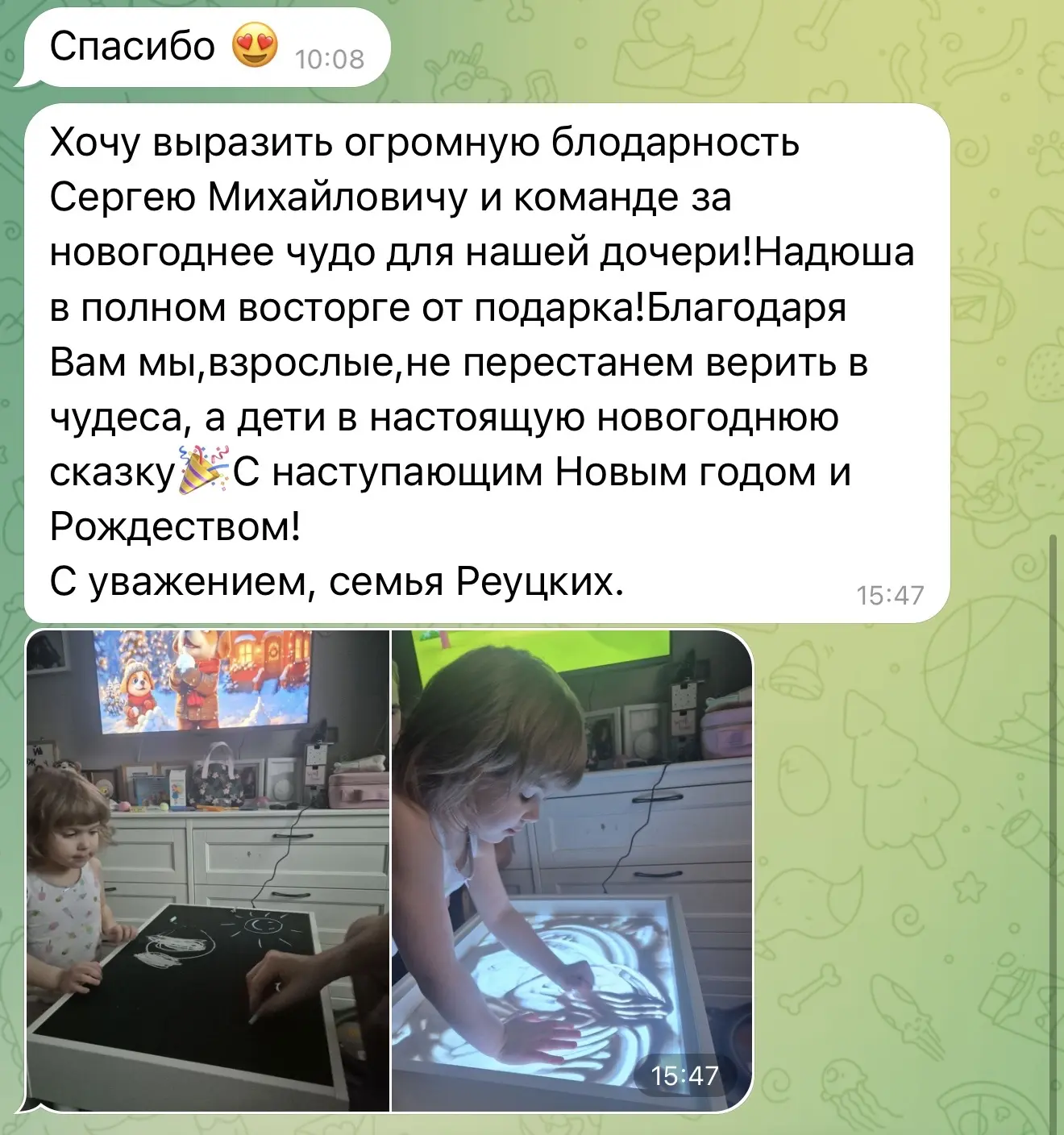 Традиционно завершаю год исполнением мечт в замечательной акции «Ёлка желаний». В региональном исполкоме «Единой России» забрал два шара с желаниями детей из Петербурга: 8-летний Григорий загадал цифровое пианино, а 4-летняя Надежда - сенсорный стол-песочницу! С большим удовольствием отправил долгожданные подарки детям, их уже успели доставить!