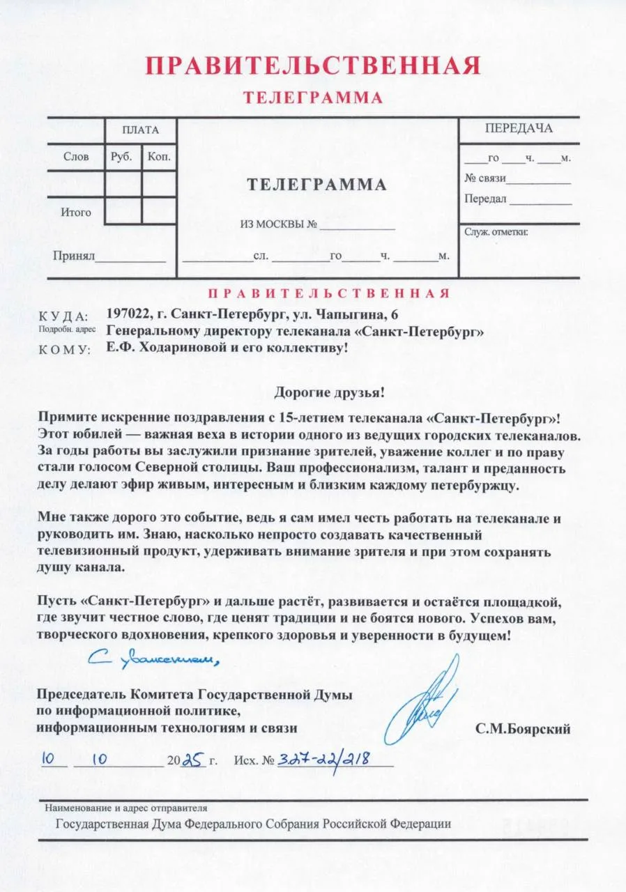 С 15-летним юбилеем, дорогой телеканал «Санкт-Петербург»!