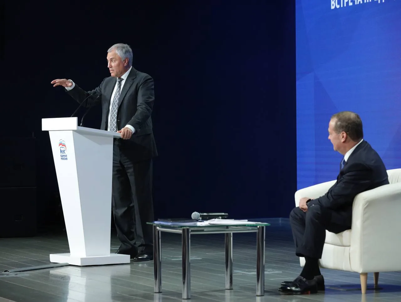Перед нами выступили Вячеслав Володин, Владимир Васильев, Ирина Яровая, Анна Кузнецова, Сергей Пахомов и Андрей Макаров. Многие в своих выступлениях тепло поздравили лидера партии Дмитрия Медведева с юбилеем — и я с удовольствием присоединяюсь к этим добрым словам!