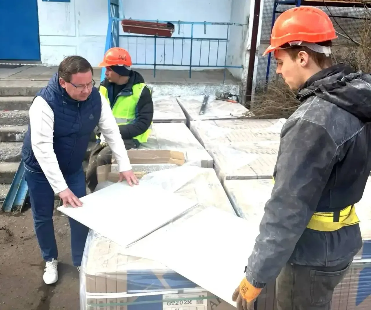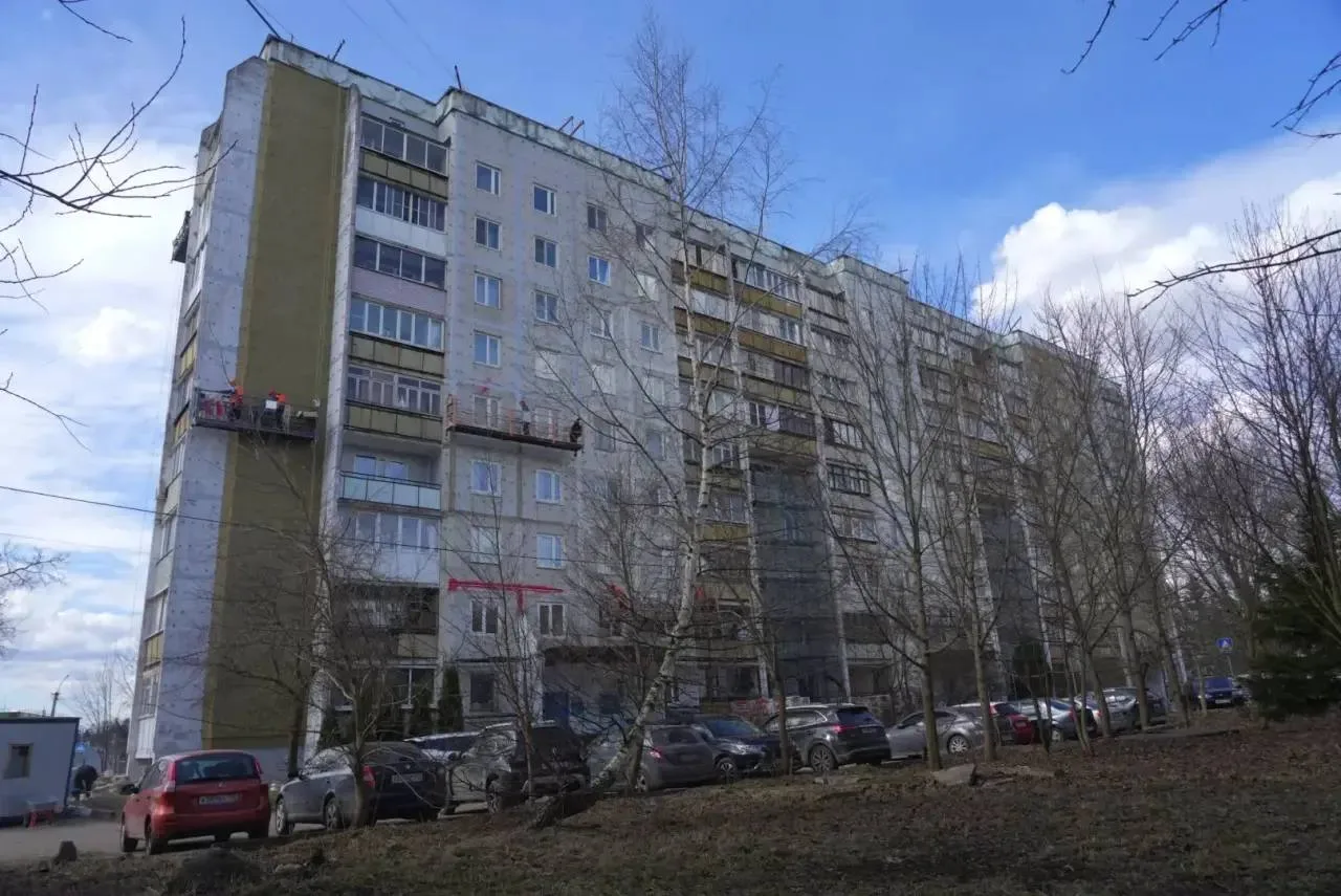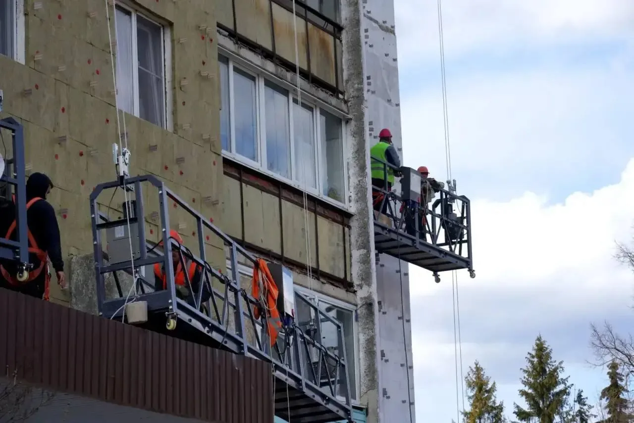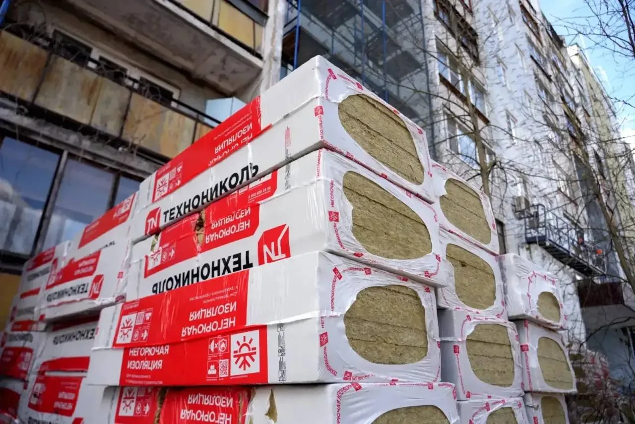 Работы проводит генподрядчик Фонда капитального ремонта. Монтируют вентилируемый фасад в два слоя; общая толщина утеплителя — 10 см. Сверху будет плитка из керамогранита. Также обшивают балконы, заменят входные двери и сделают отмостку. Срок завершения работ — 1 августа.