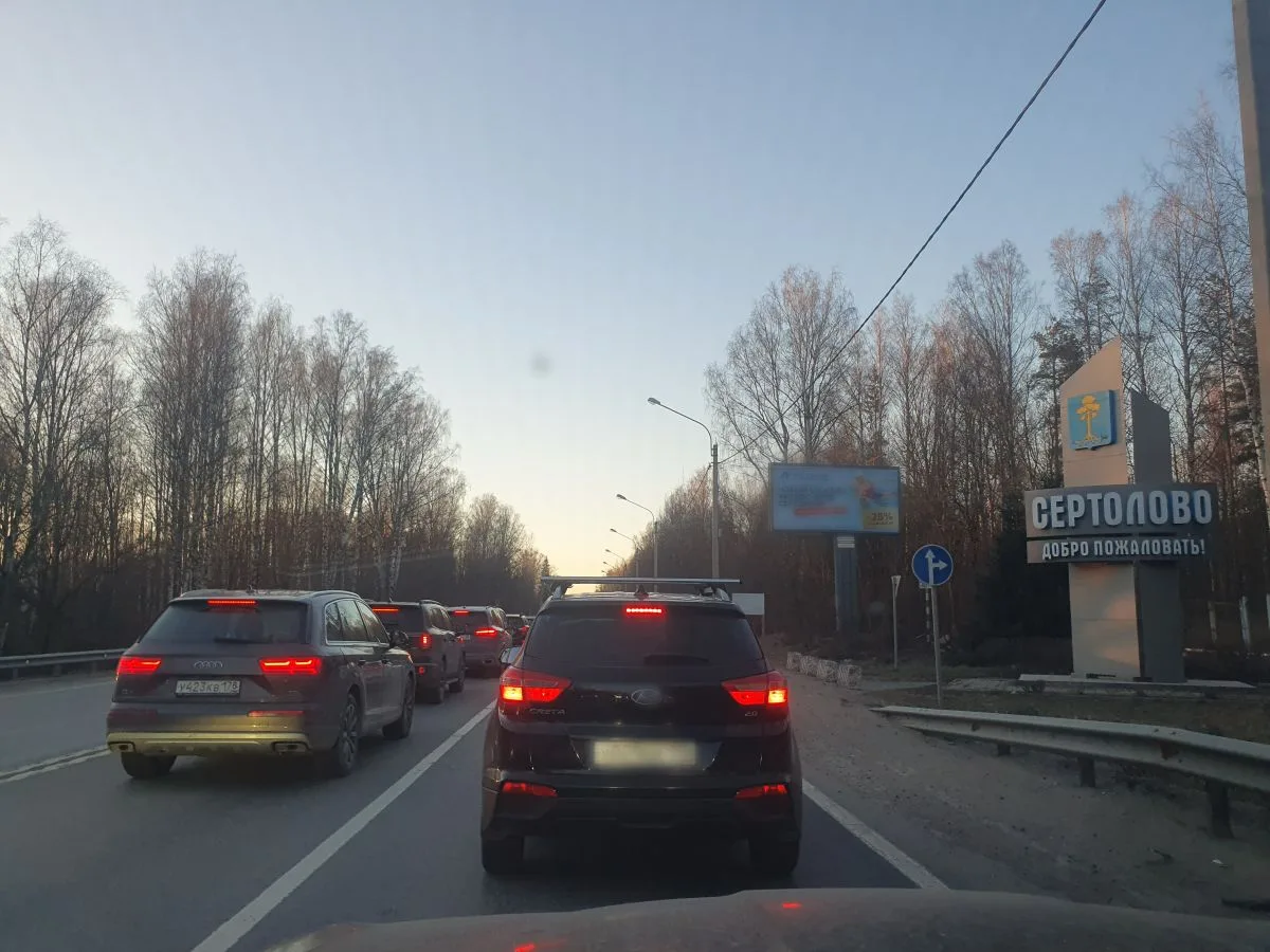 В сторону Сертолово на Выборгском шоссе затор. Будьте аккуратны!