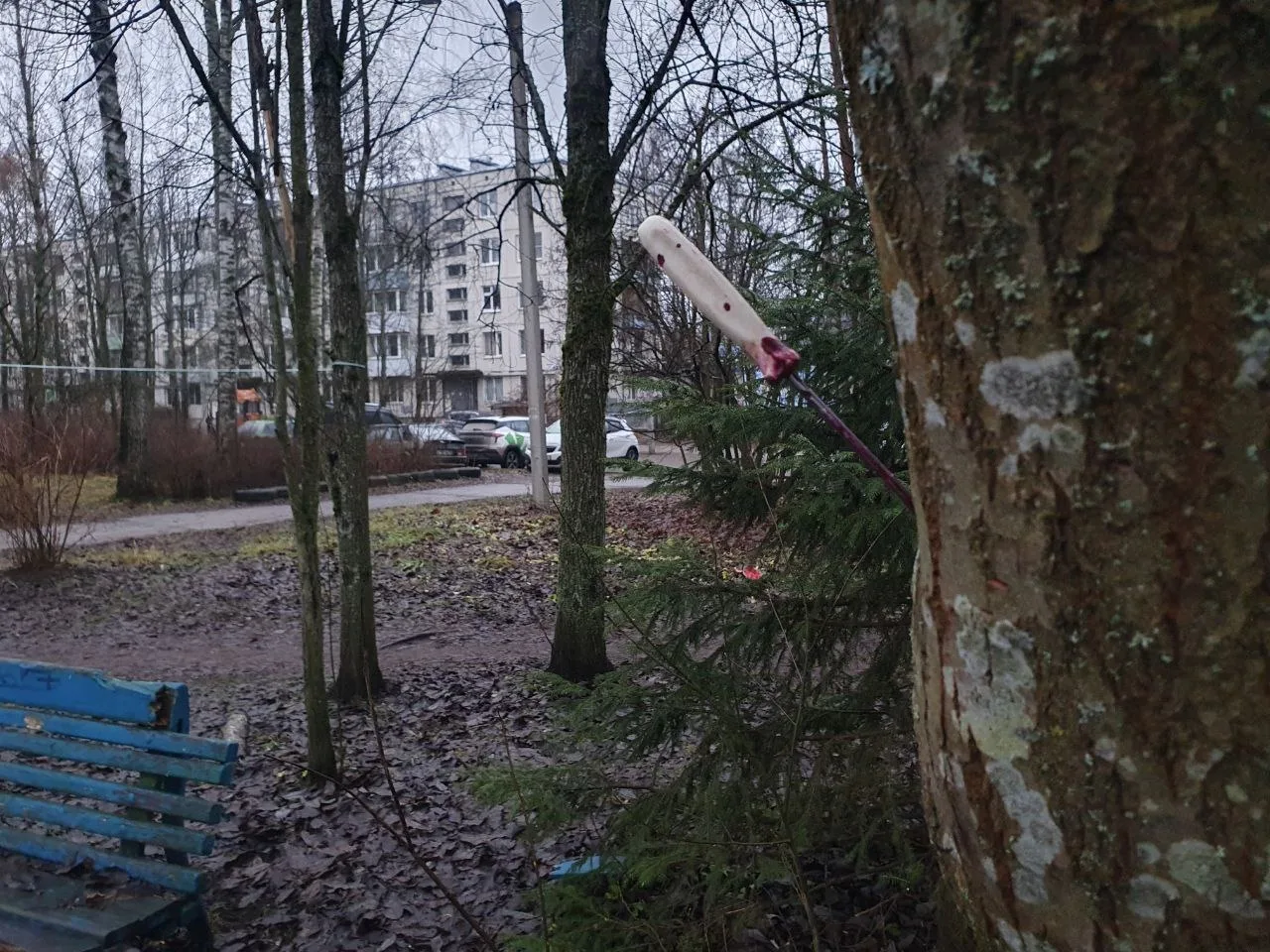 На Школьной неизвестные воткнули отвёртку в дерево. Зачем это сделано и для кого это может быть знаком остаётся загадкой.