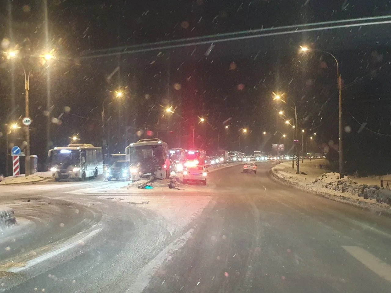 ДТП в Парголово на горе. Маршрутка ушла в ограждение.