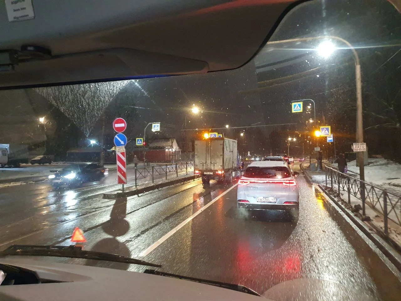 ДТП на Выборгском шоссе в сторону Сертолова, у поворота на Приозерское шоссе, небольшой затор