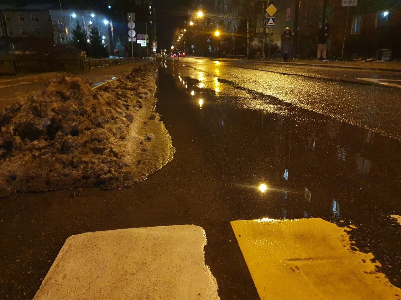 В Сертолово резкий "минус" поменялся на резкий "плюс". Ещё вчера был сильный мороз, а сегодня вечером потекли ручейки из растаевшего снега ❄️