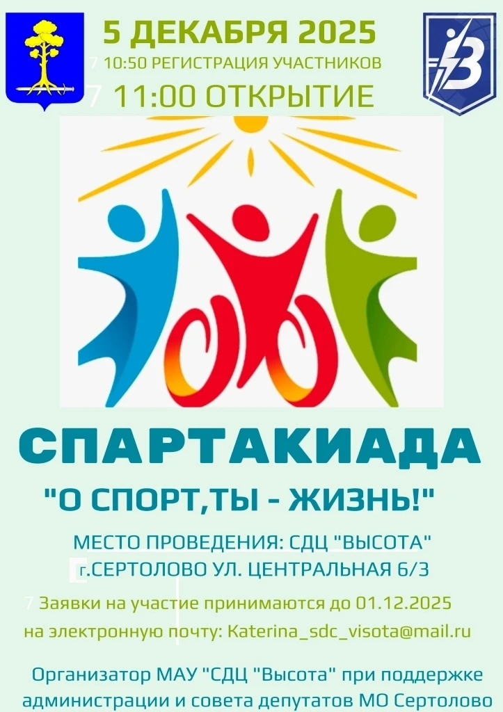 Уже завтра, 5 декабря, в МАУ «СДЦ «Высота» будет проходить спартакиада для людей с ограниченными возможностями «О спорт, ты – жизнь!».