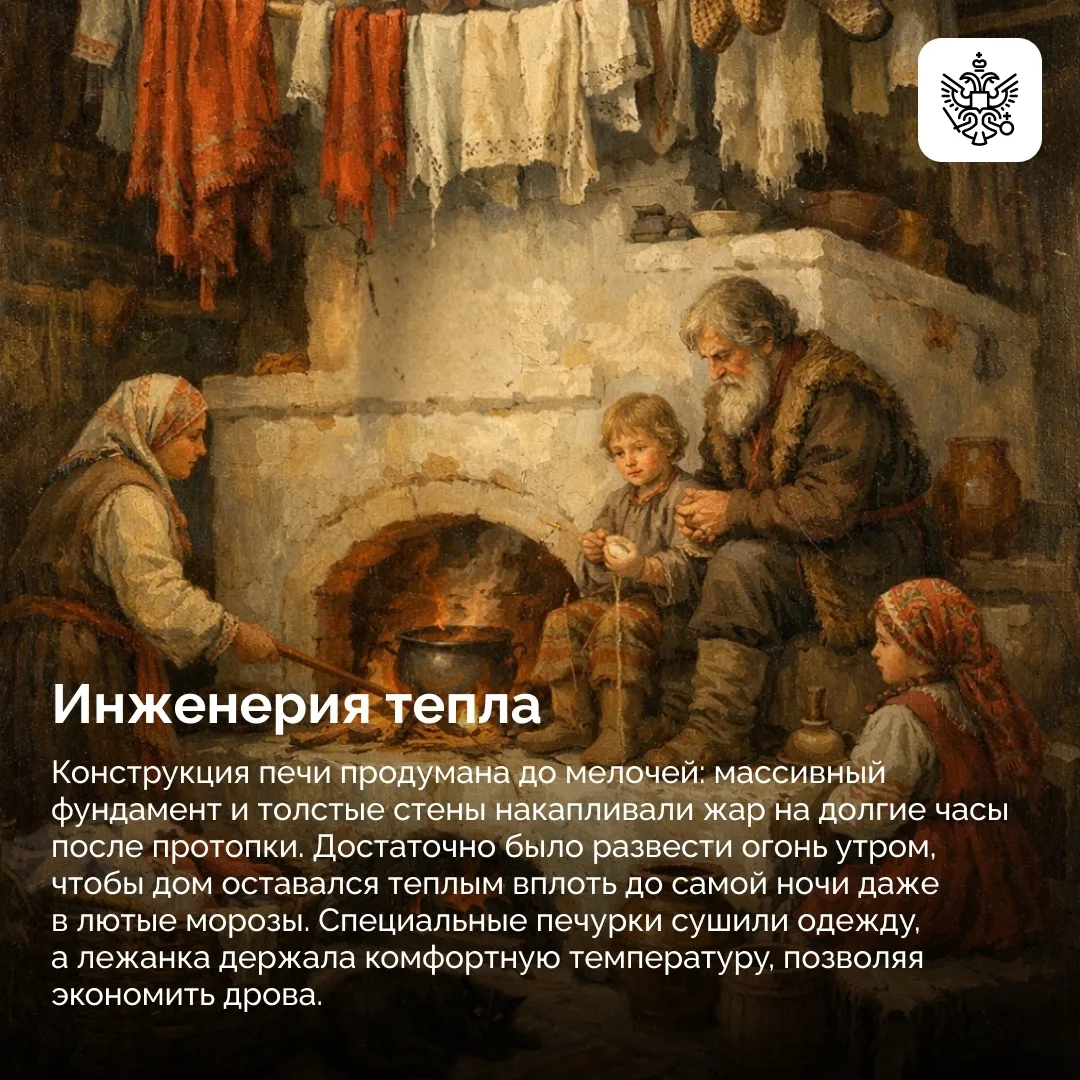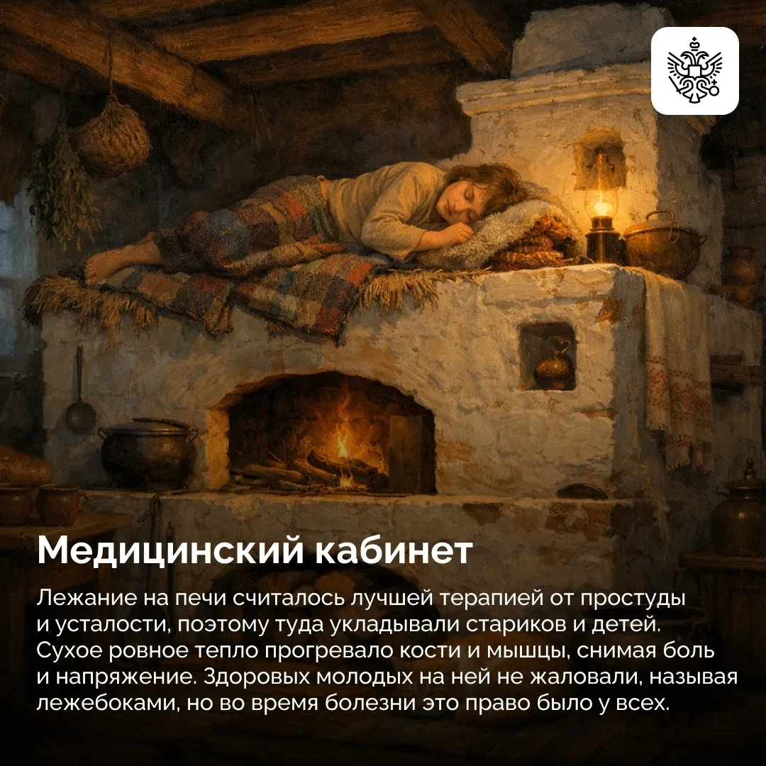 Смотрите карточки, чтобы узнать, как работала эта гениальная система и почему лежание на печи — не лень, а важная терапевтическая процедура.