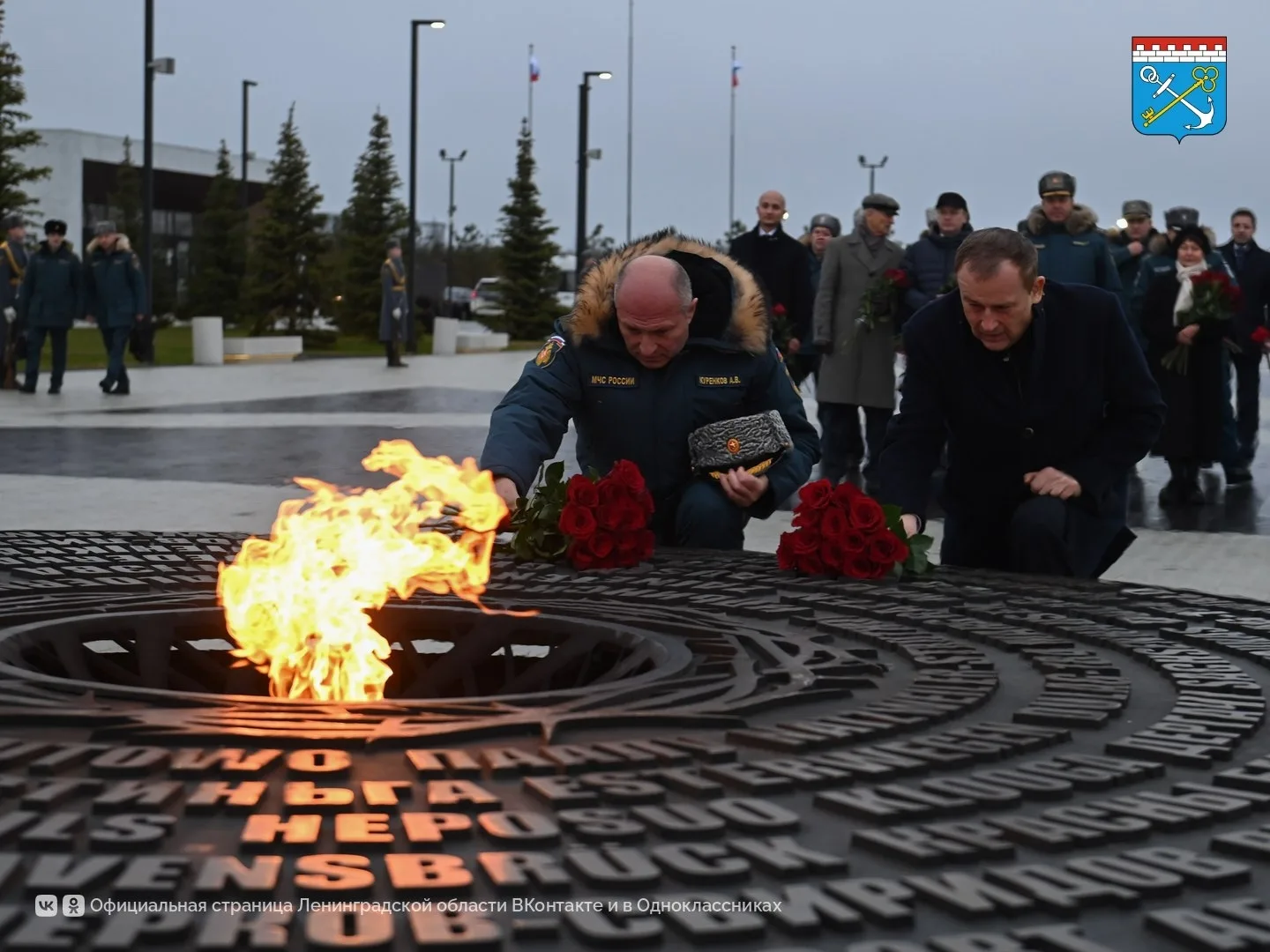 В рамках рабочего визита глава Александр Куренков и Александр Дрозденко также возложили цветы к мемориалу мирным жителям СССР — жертвам нацистского геноцида в годы Великой Отечественной войны в Зайцево и встретились с личным составом МЧС ленинградского гарнизона.
