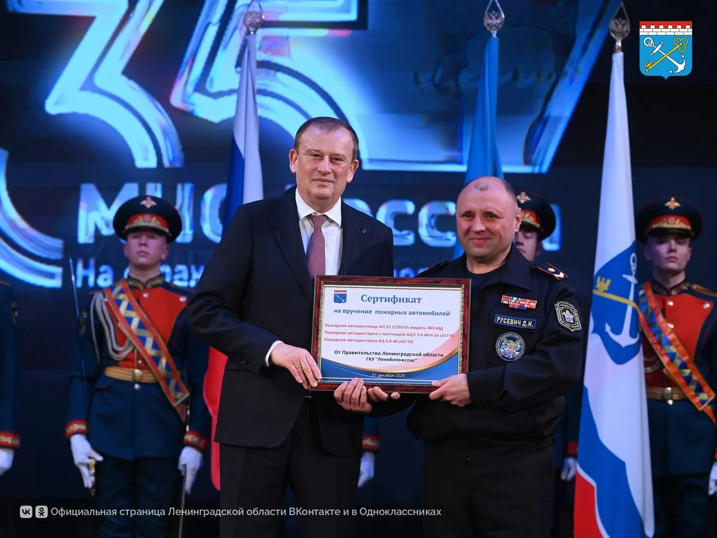 В торжественной церемонии приняли участие министр Российской Федерации по делам гражданской обороны, чрезвычайным ситуациям и ликвидации последствий стихийных бедствий Александр Куренков и губернатор Ленинградской области Александр Дрозденко.