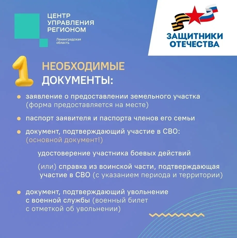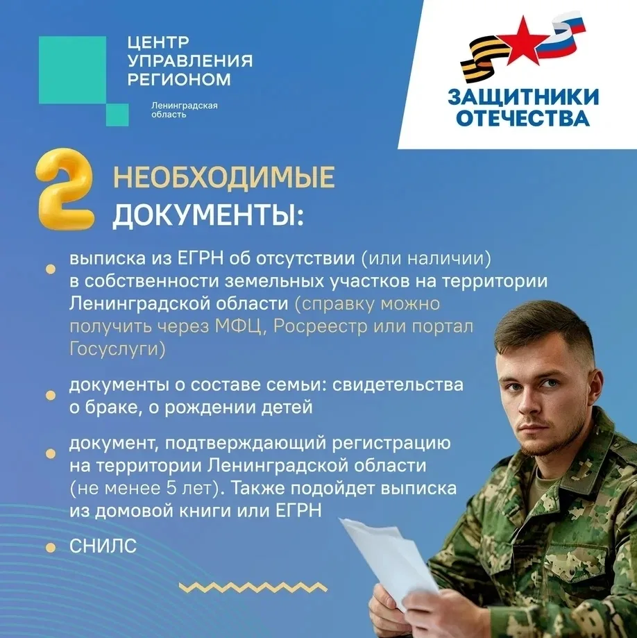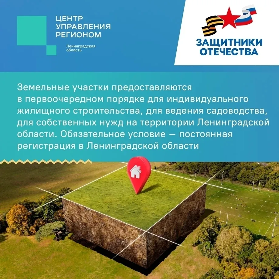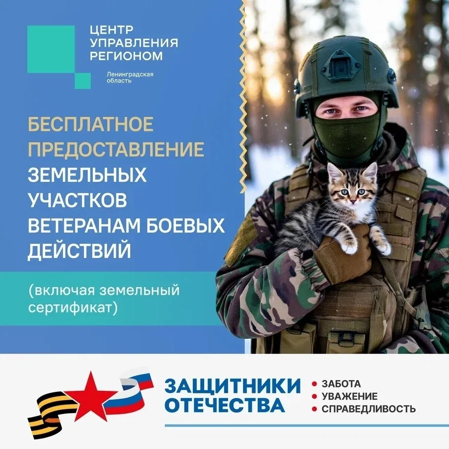 ЦУР Ленинградской области совместно с филиалом фонда «Защитники Отечества» рассказал о бесплатном предоставлении земельных участков ветеранам спецоперации.