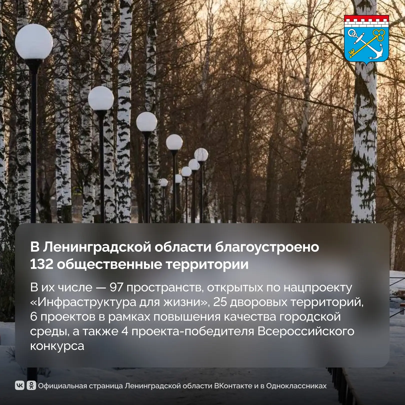 В Ленинградской области благоустроено 132 территории в 2025 году.