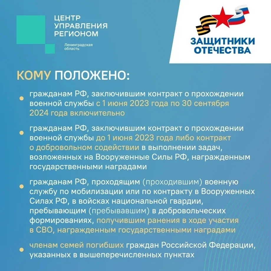 Продолжаем рассказывать о мерах социальной поддержки для участников СВО и их семей в Ленинградской области