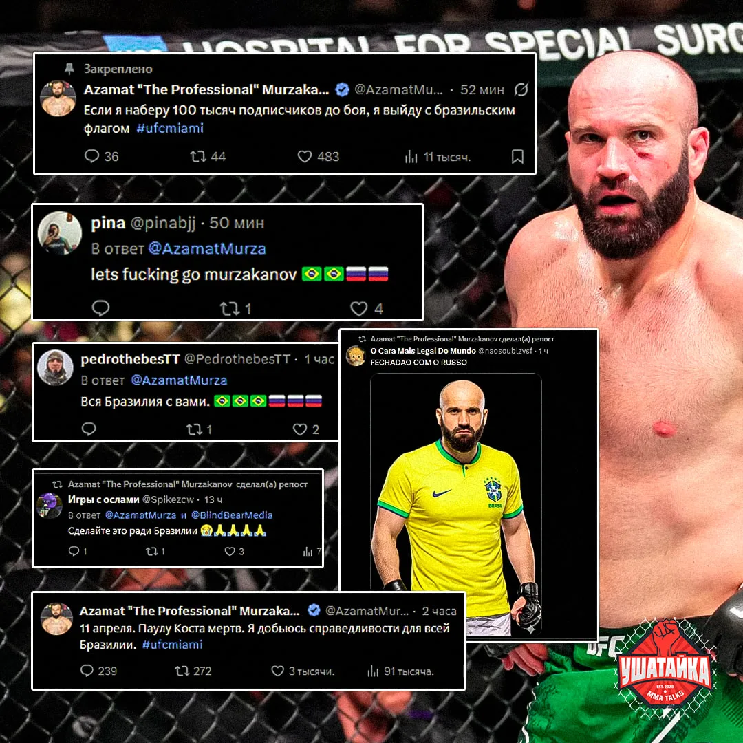 Мурзаканов навел жесткой суеты у себя в соцсетях: пообещал выйти с флагом Бразилии на бой с Костой, если наберет 100 тысяч подписчиков 🔥
