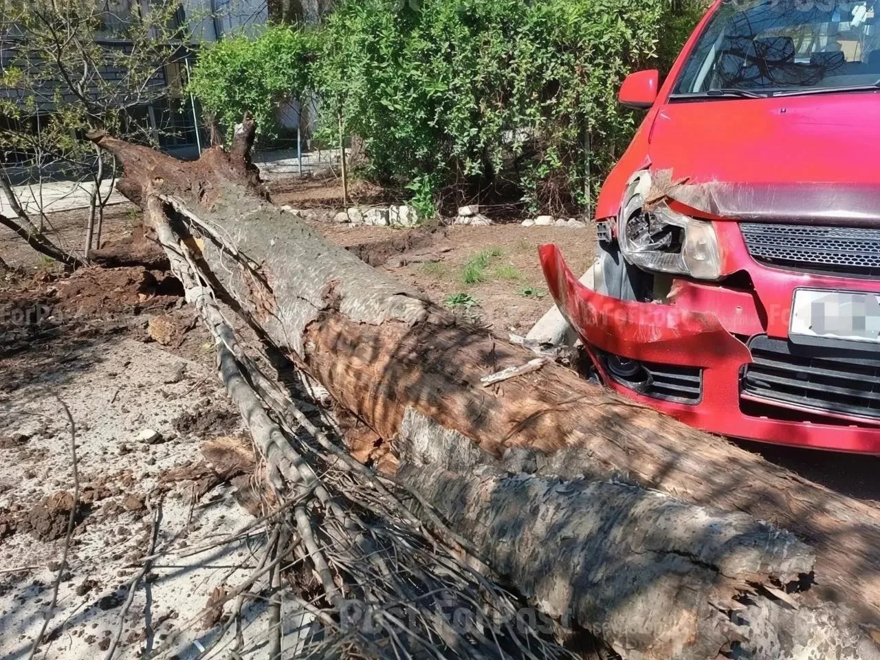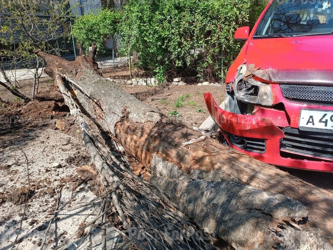 Инцидент произошёл 14 апреля во дворе дома №29 на ул. Гоголя. Сухой тополь рухнул на придомовой территории, повредив две машины местных жителей.