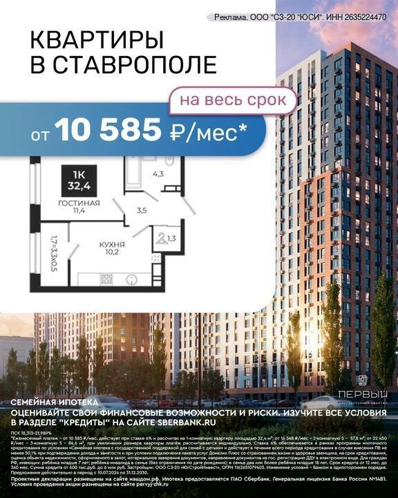 🔹 Семейная ипотека 6% — на ВЕСЬ срок