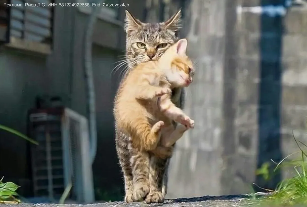 Котёнок был жив, а вот мать... Глубокая рана на боку, кровь на сером меху.