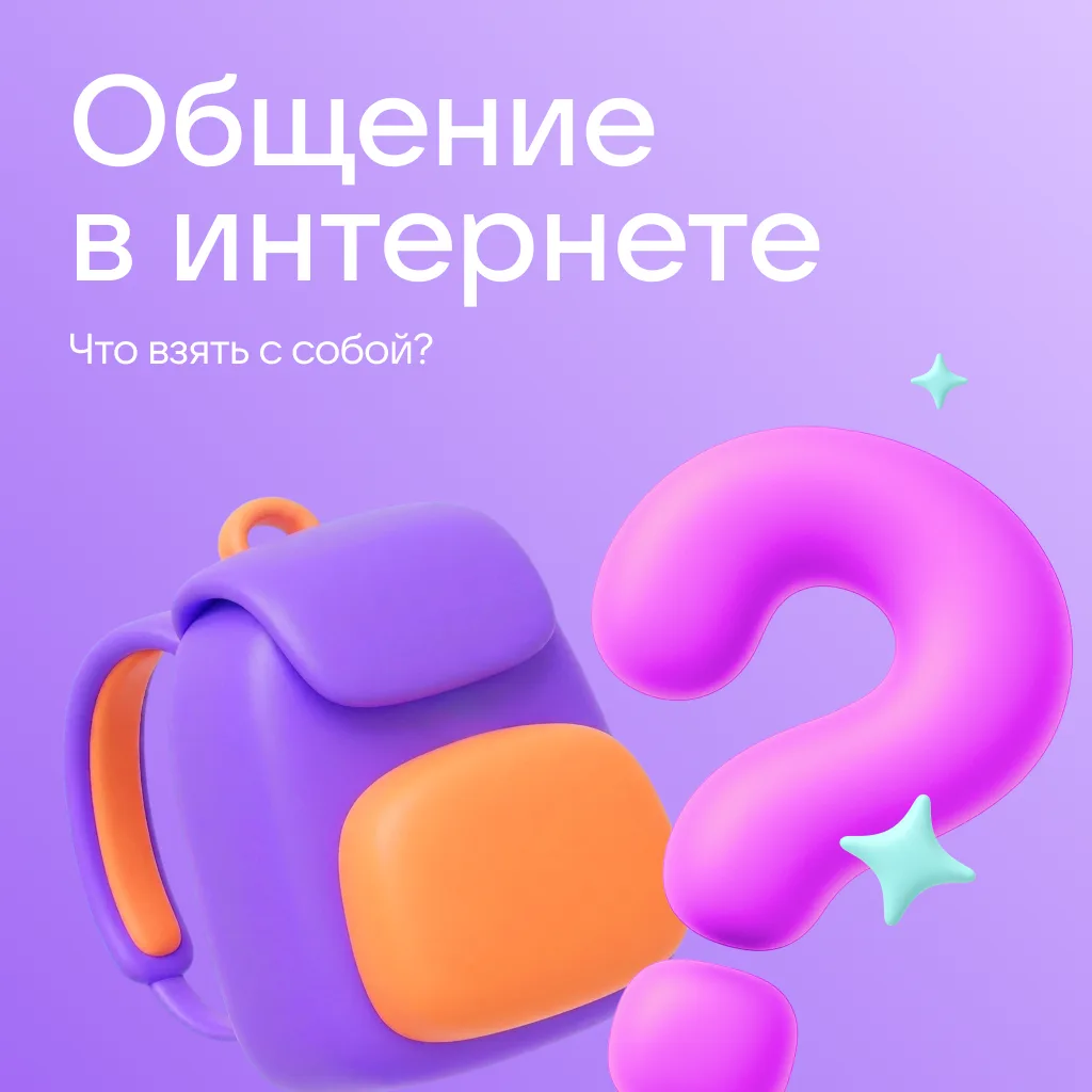 Рассказали в карточках всё самое важное для общения онлайн. Обсудите с детьми, что стоит взять с собой в цифровое пространство, а что — нет!