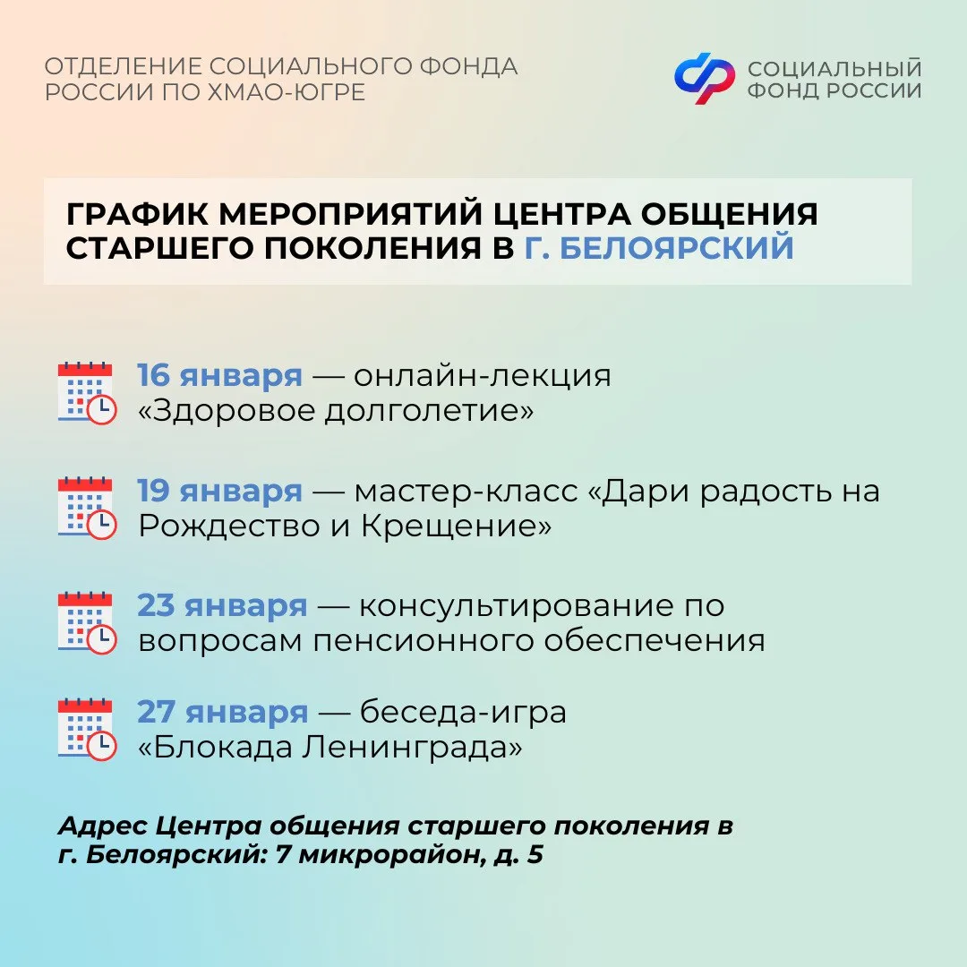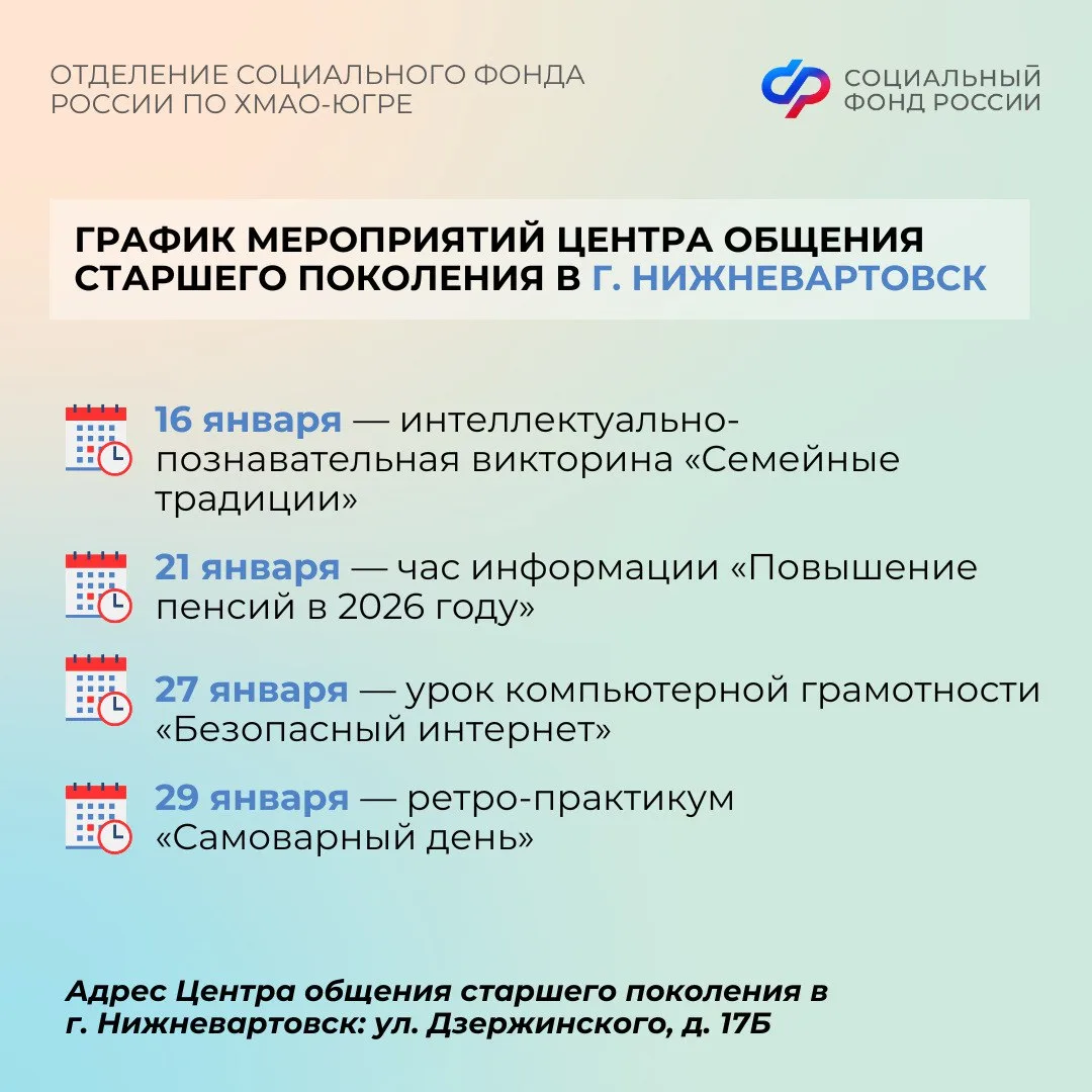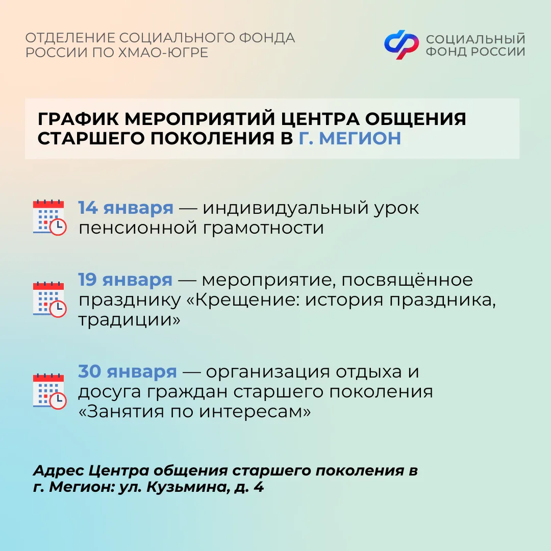 Центры общения старшего поколения Отделения СФР по ХМАО-Югре приглашают гостей в январе
