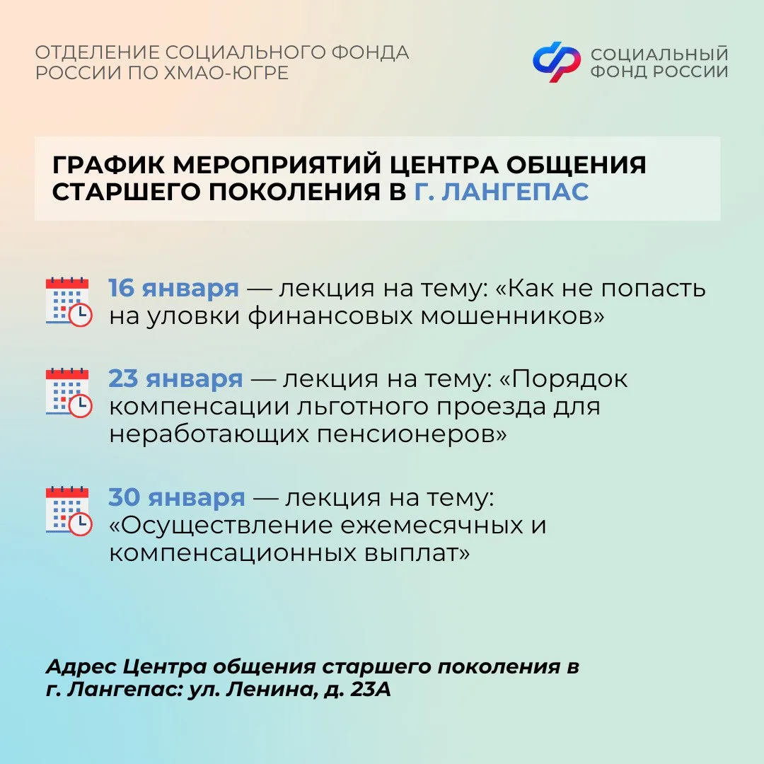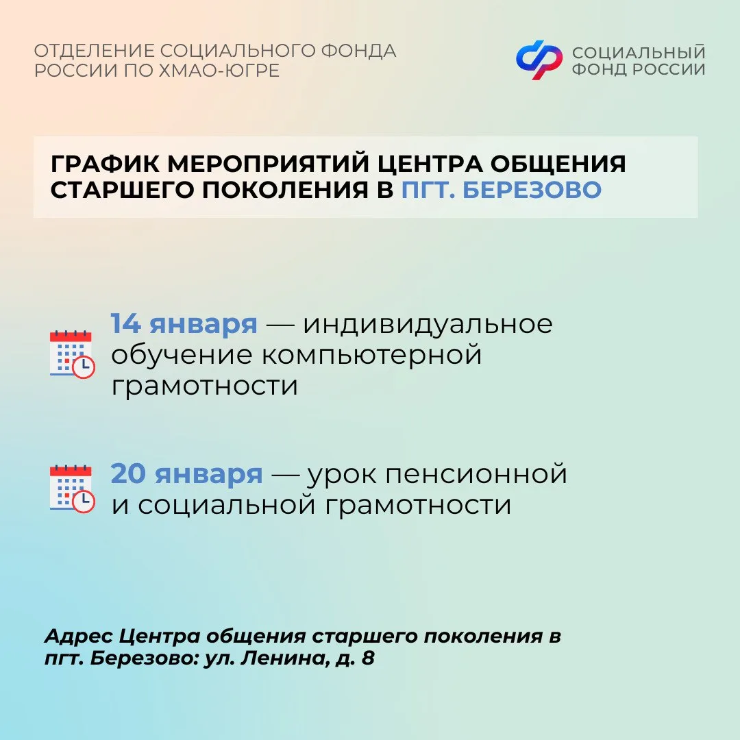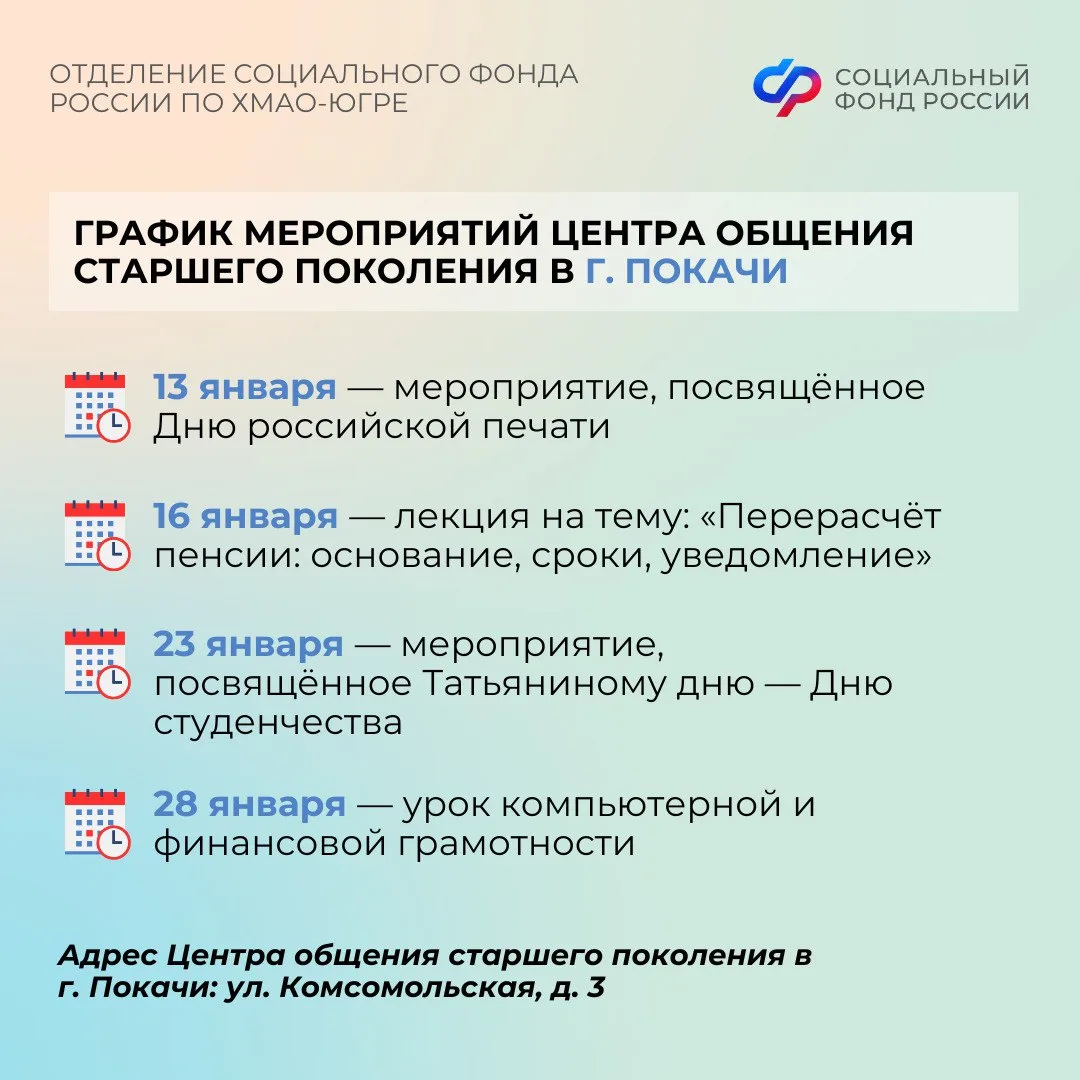 Центры общения старшего поколения Отделения СФР по ХМАО-Югре приглашают гостей в январе