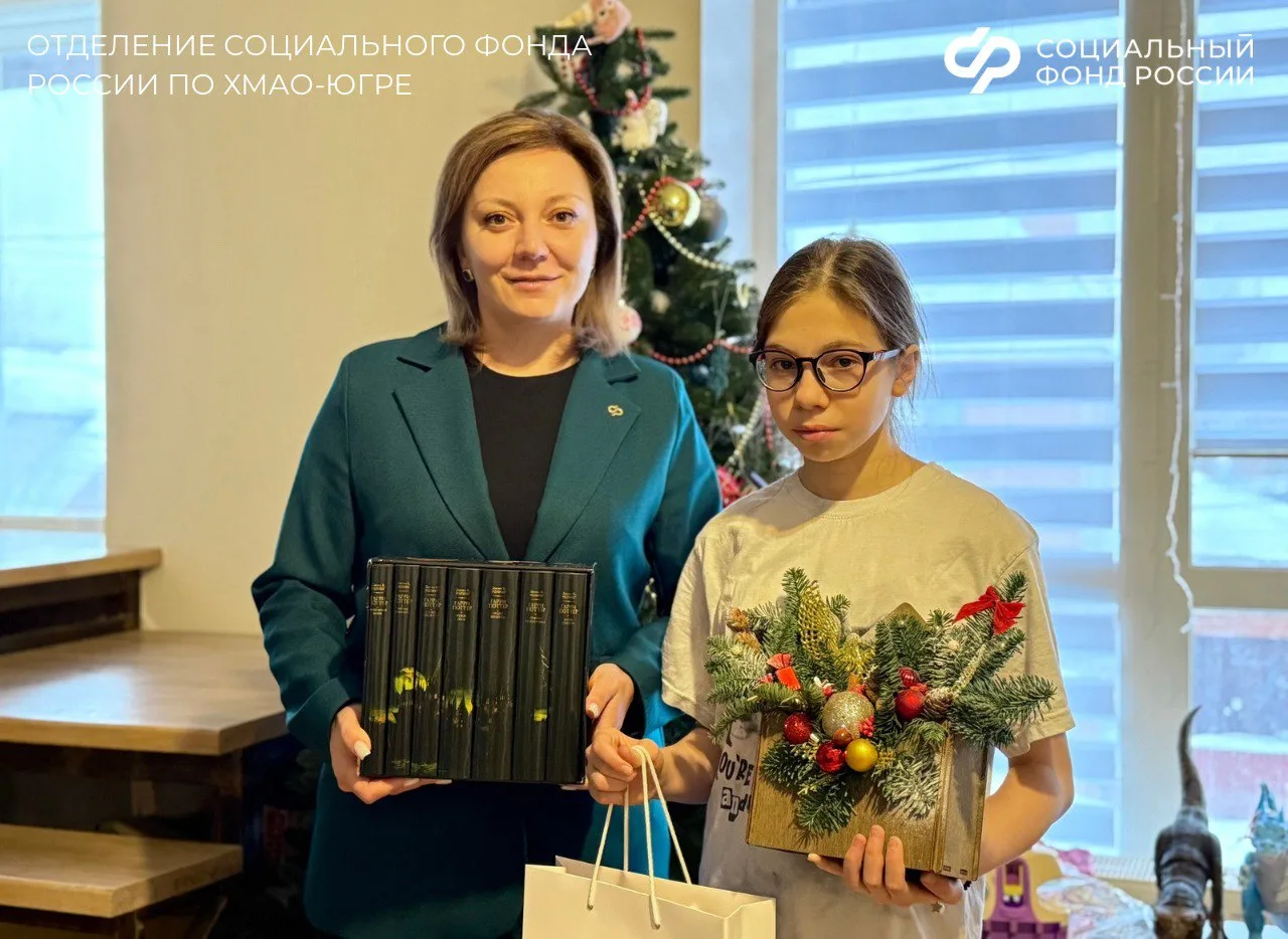 В рамках участия в акции «Ёлка желаний» Управляющий Отделением Социального фонда России по ХМАО-Югре Ольга Галюк исполнила заветное желание 12-летней Алёны из Ханты-Мансийска — вручила долгожданную серию книг о Гарри Поттере в коллекционном издании.