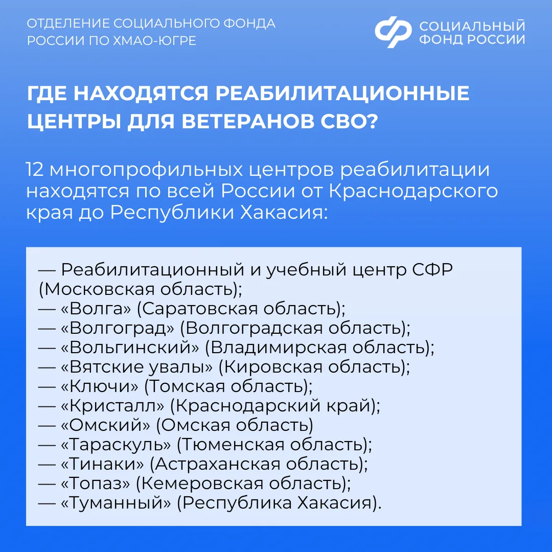 Демобилизованные участники СВО из Югры могут пройти медицинскую реабилитацию и санаторное лечение в центрах реабилитации Социального фонда