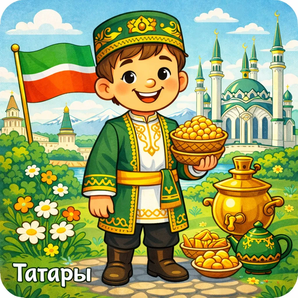 Наклейки, карточки "Дети народов России" для окружающего мира.
