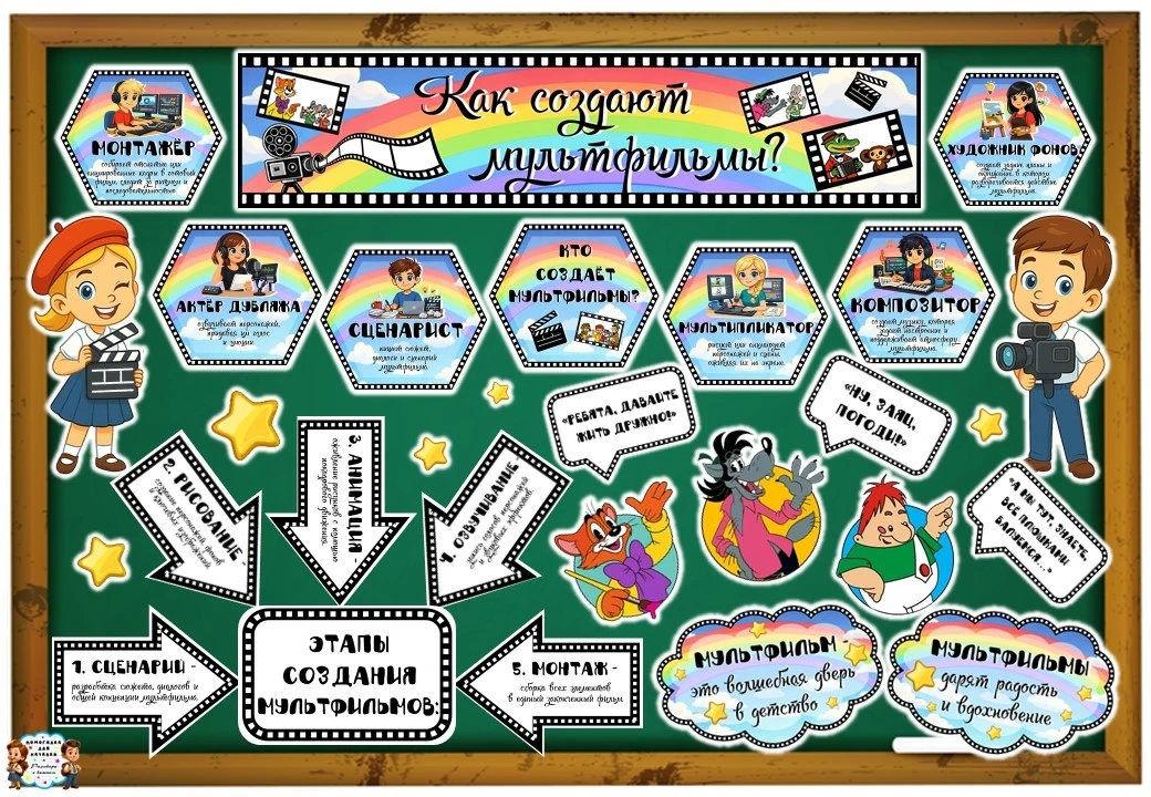 Оформление доски "Как создают мультфильмы?"🎞️