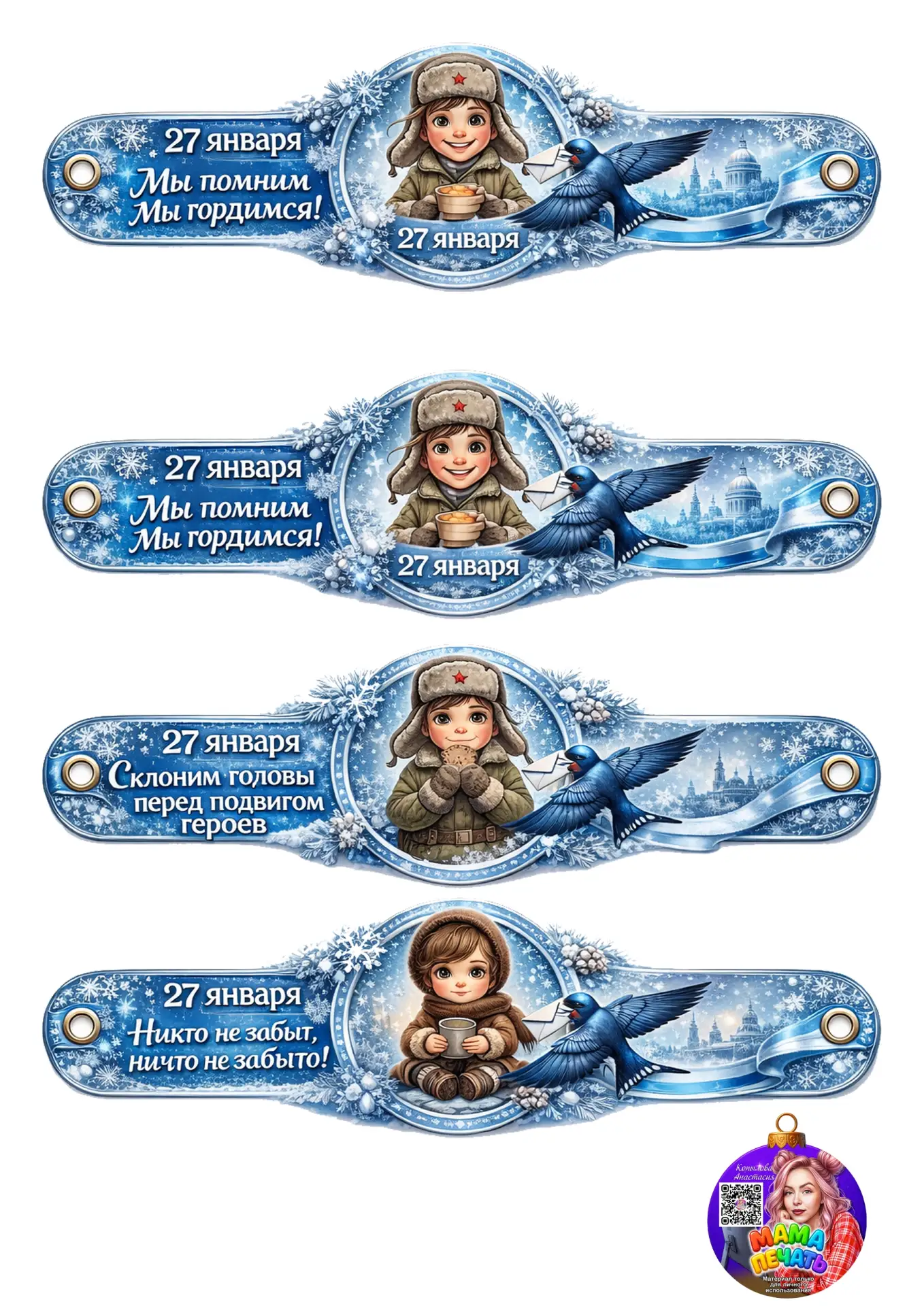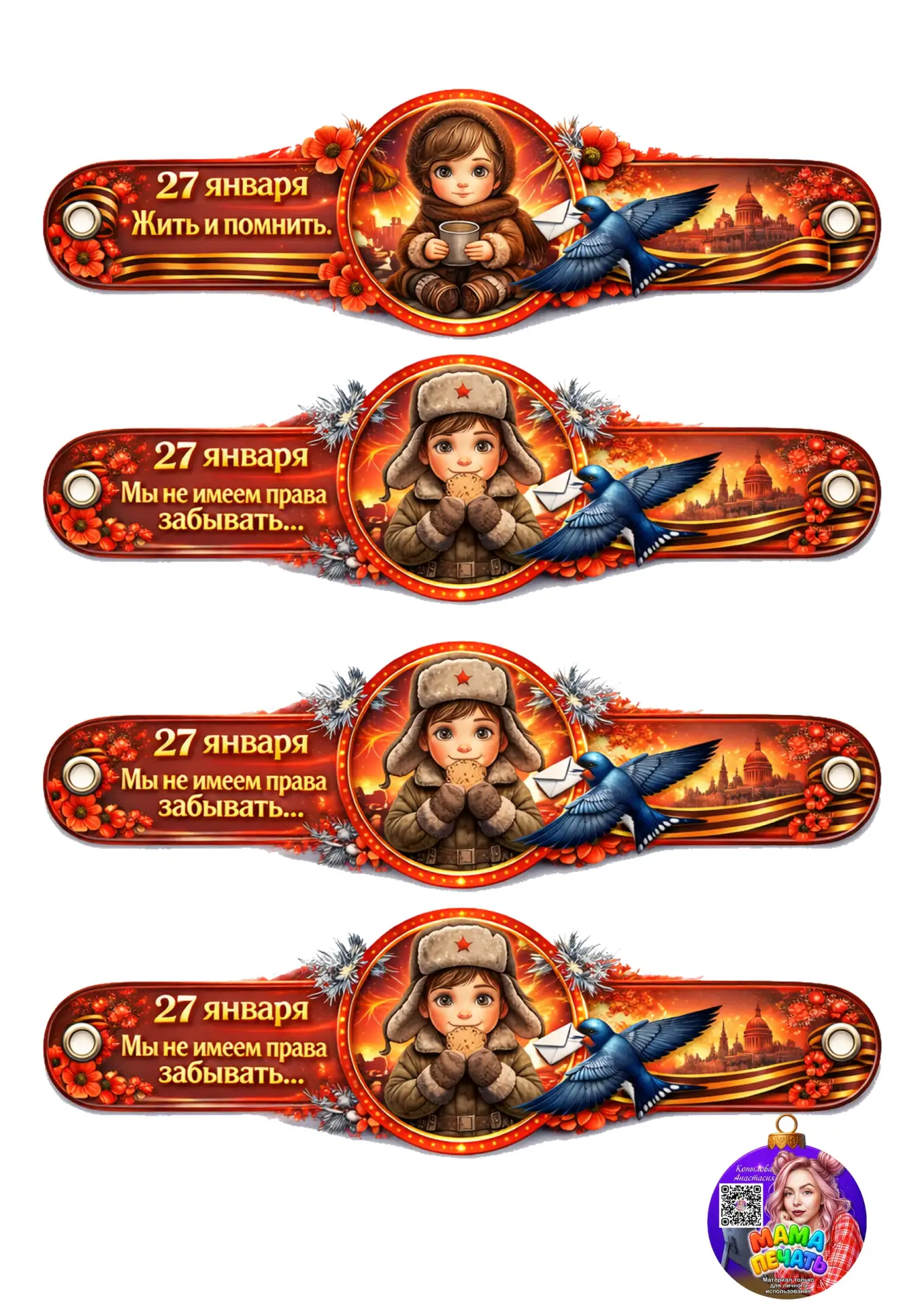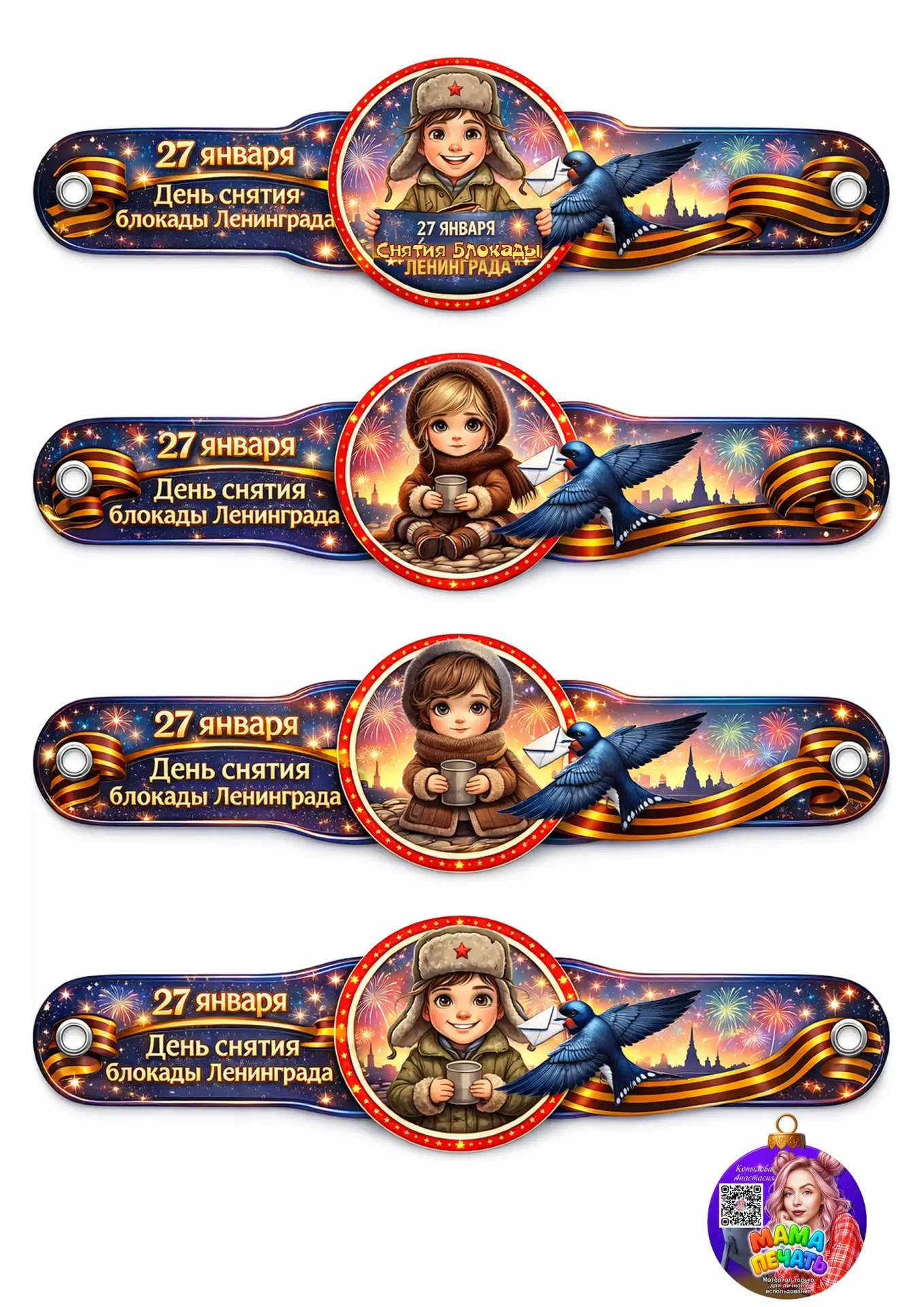 Красивые шаблоны браслетиков ко Дню снятия блокады Ленинграда.