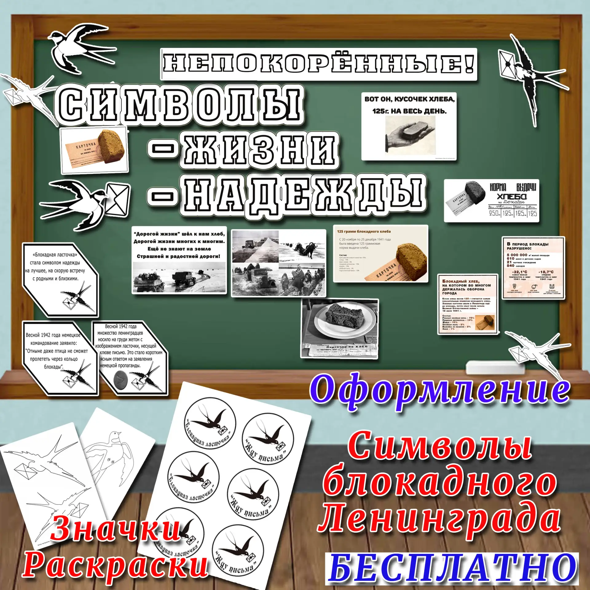 🔥 Основные символы блокадного Ленинграда + значки "Блокадная ласточка" и раскраска ласточки.