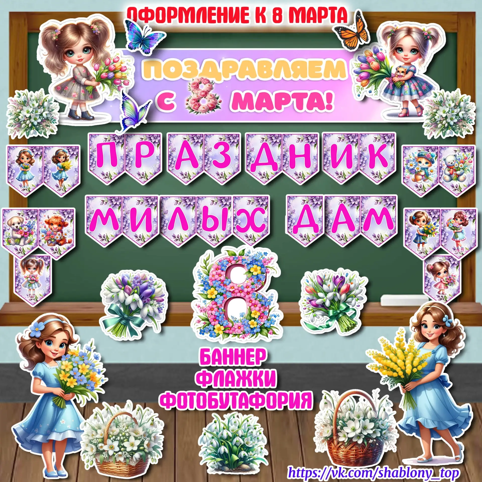 ✓ Буквы, флажки, декор (цветы, девочки, бабочки, зайчики, лисички)