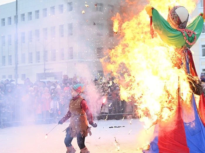 Седьмой день Масленицы - Прощёное воскресенье. В этот день разворачиваются грандиозные гуляния с конкурсами, хороводами и угощениями. Кульминация праздника - сожжение чучела.