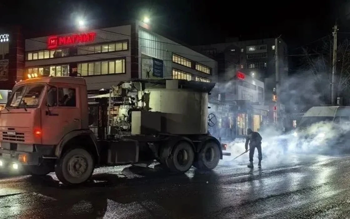 С использованием литой горячей асфальтобетонной смеси подрядная организация проводит ямочный ремонт проезжей части на ранее подготовленных участках. Дефекты дорожного покрытия устранялись на улице Хабарова и в переулке Комиссаровском.