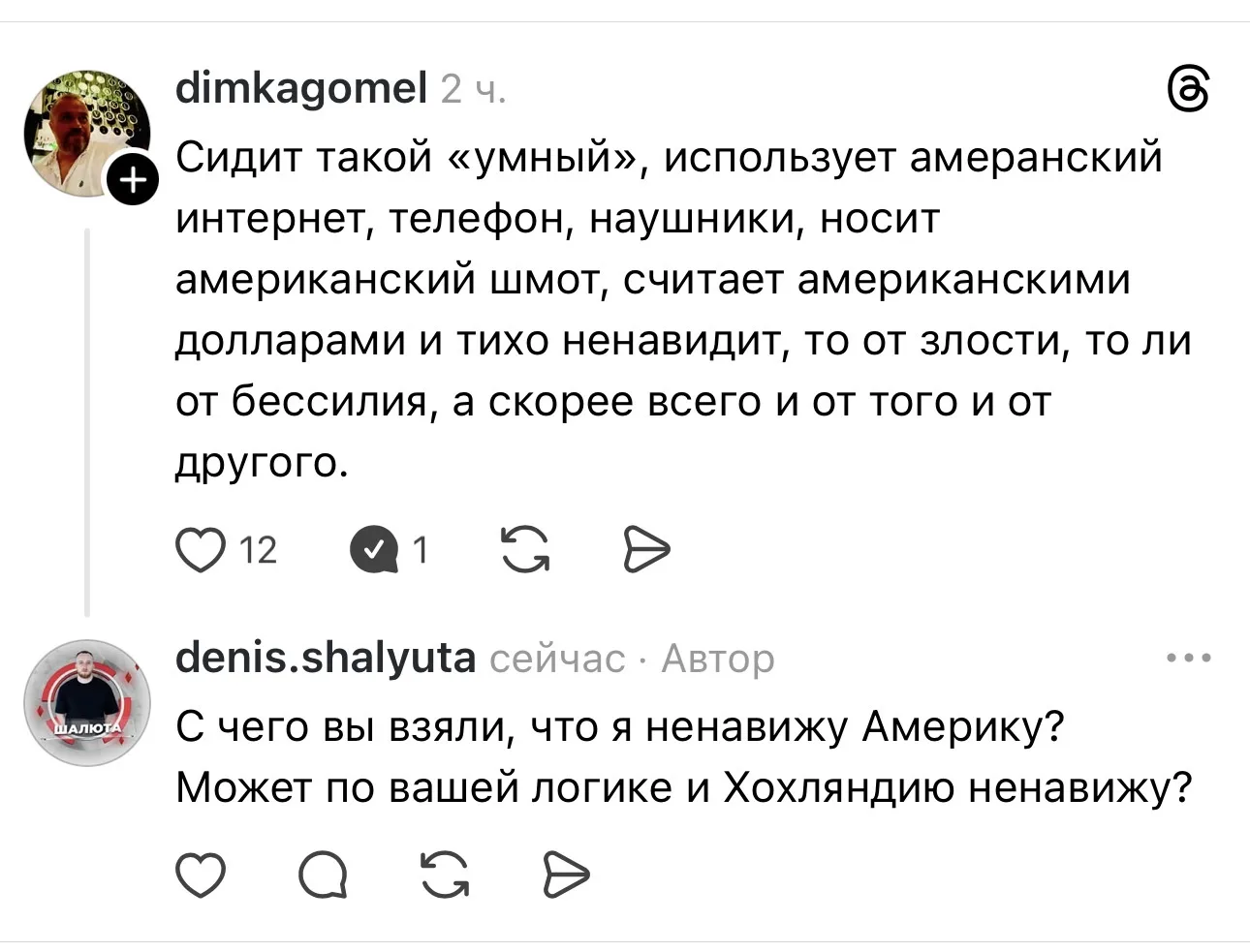 Я немножко не понимаю, а с чего вообще человеки в интернете решают, что я или кто-то другой из патриотично настроенных граждан России, должен(ы) ненавидить США? Или Украину?