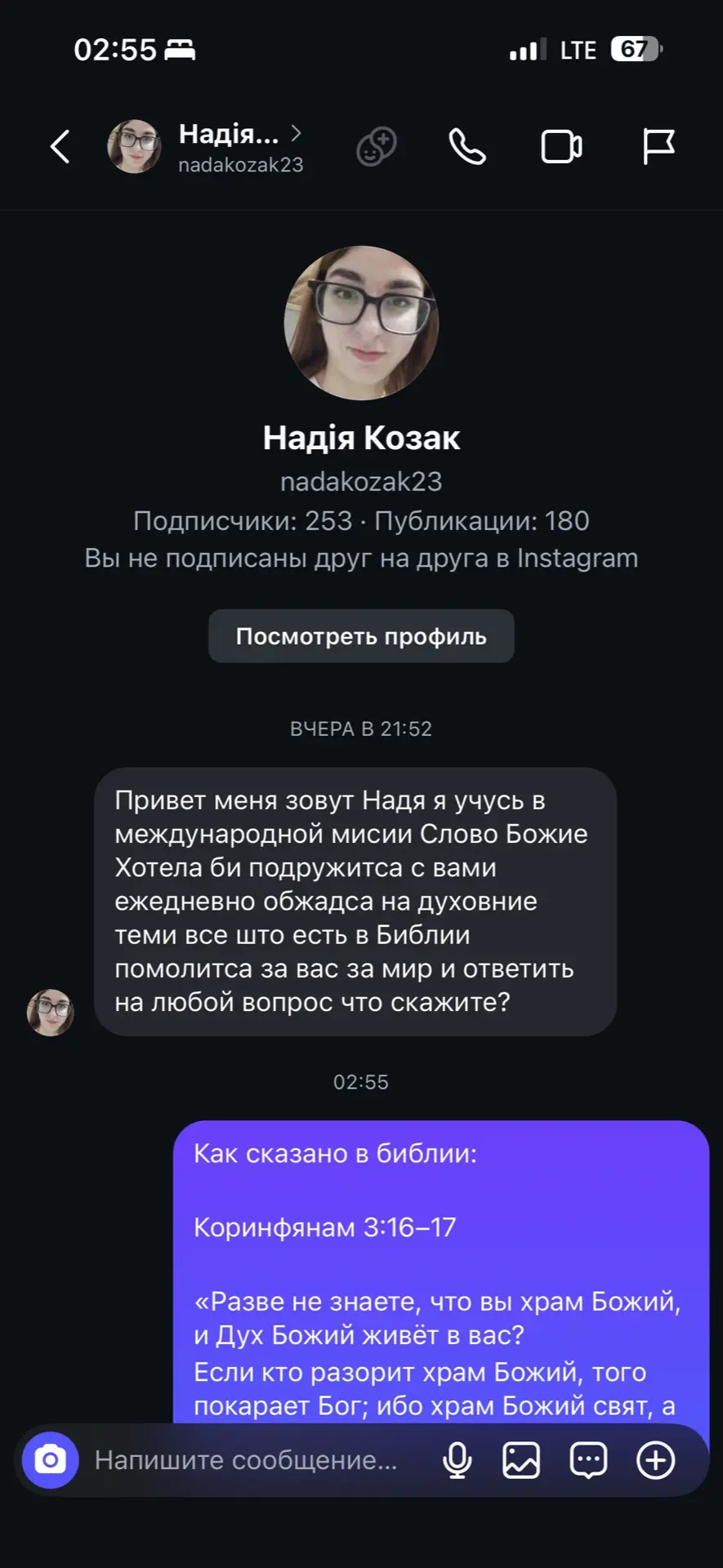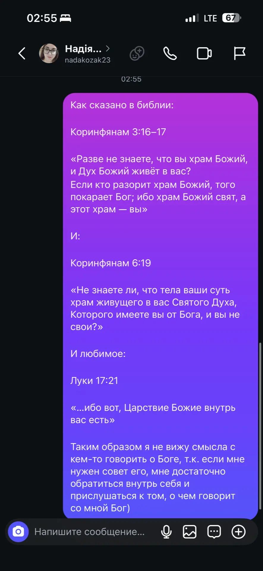 Довольно неожиданное сообщение в личку на тему Бога с предложением поговорить о нём)