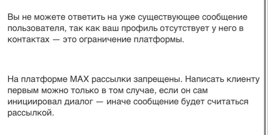 Клиент заходит на сайт, оставляет заявку/заказ/обратную связь - но ответить клиенту в Максе я не могу, по тому, что на половом органе они вертели нужды бизнеса. Спасибо!