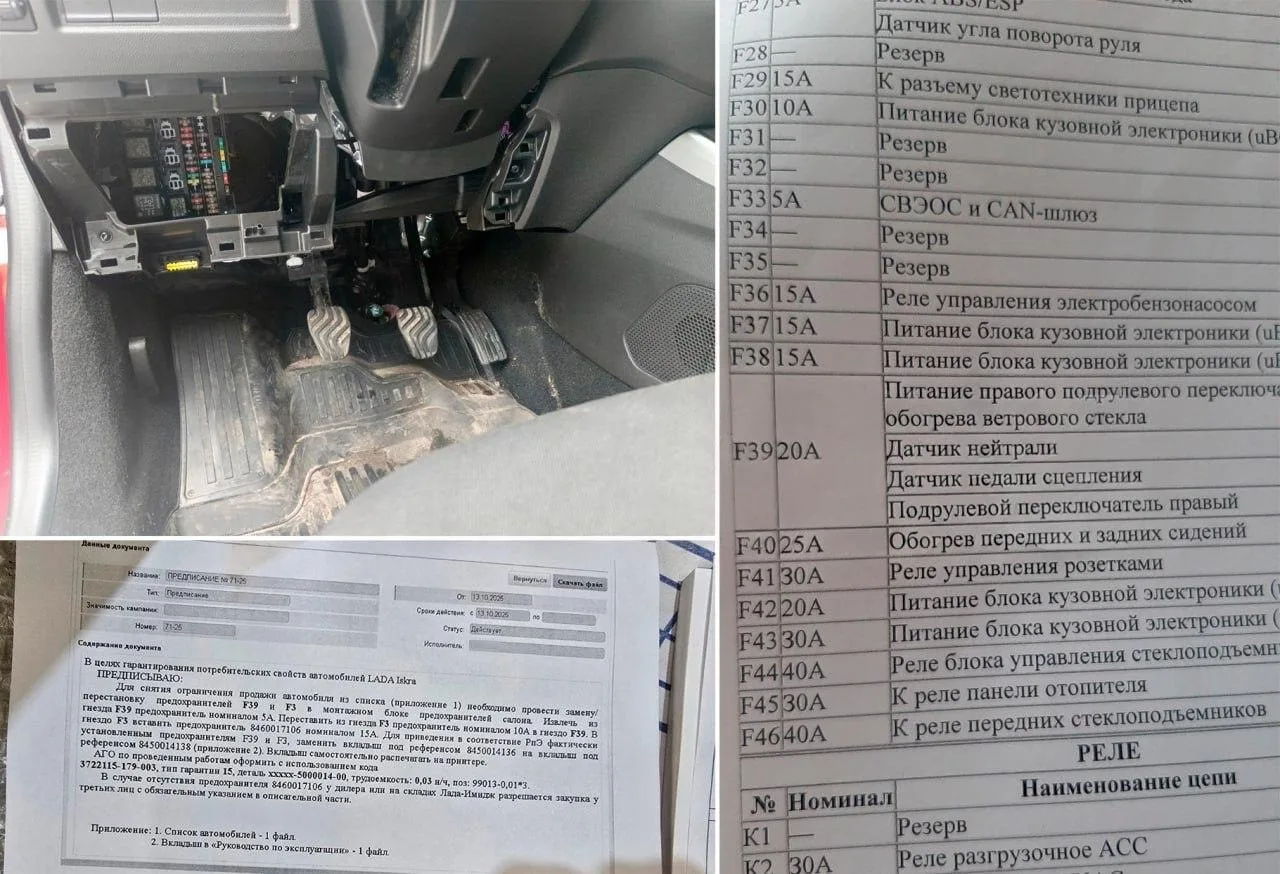 Причина оказалась в перепутанных предохранителях на заводе. АвтоВАЗ выпустил официальную инструкцию по их перестановке. После правильной установки все системы снова начинают функционировать как положено.