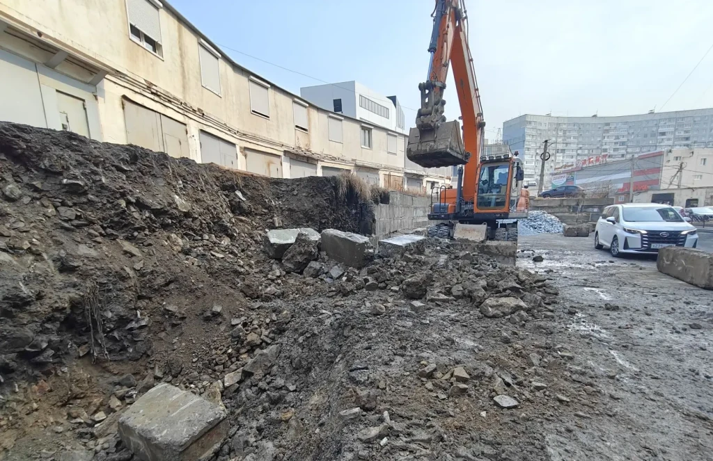 К ремонту подпорных стен приступили на Ладыгина, 11 во Владивостоке.