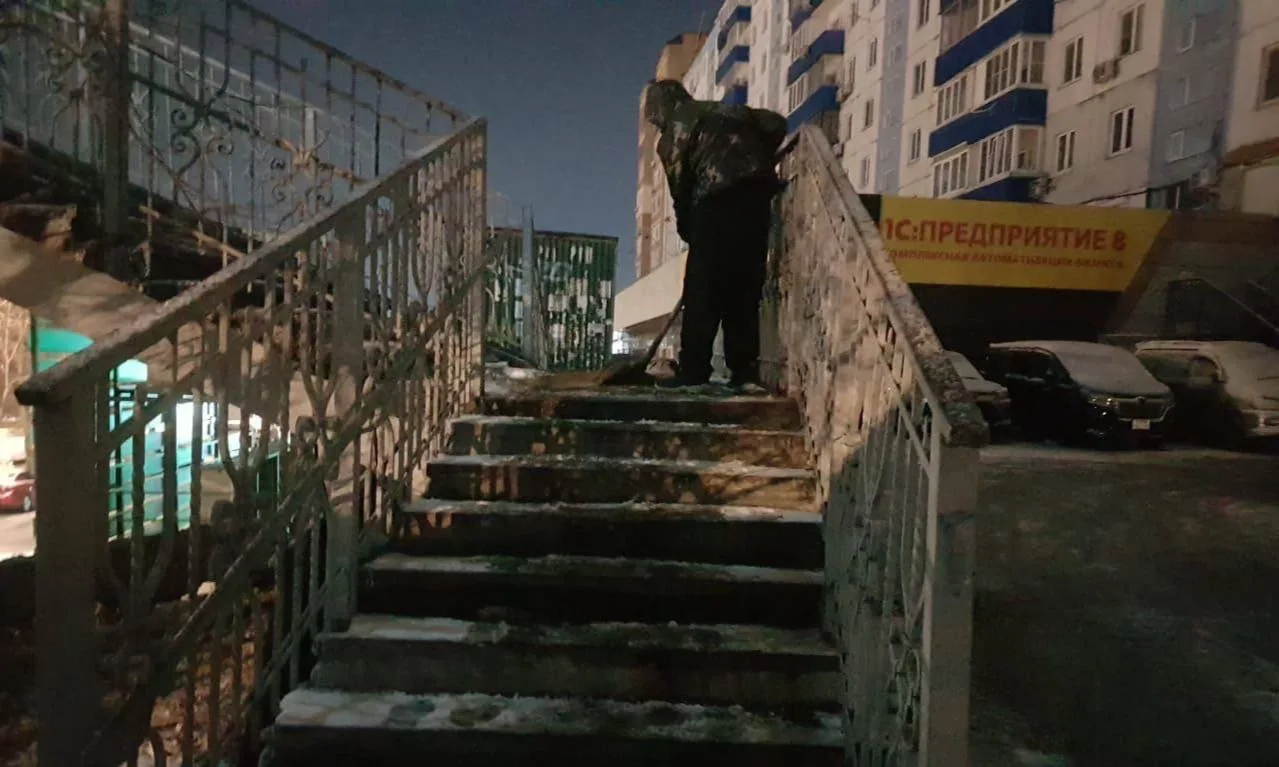 ✔️Обработка дорог, тротуаров, лестниц, проездов к социальным учреждениям и домам реагентами велась дорожной службой «СГТ» в течение ночи.