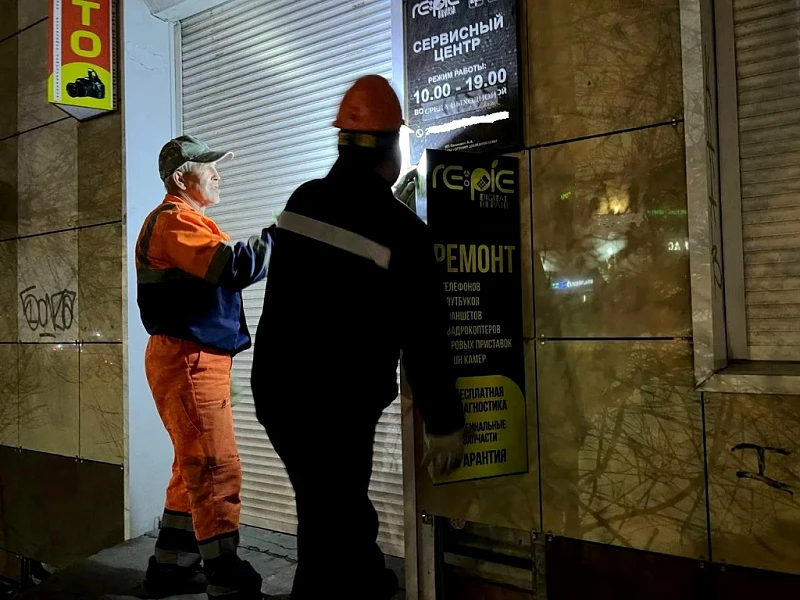 🔹Минувшей ночью сразу по нескольким адресам проходил демонтаж самовольно установленной и размещенной на фасадах зданий рекламы.