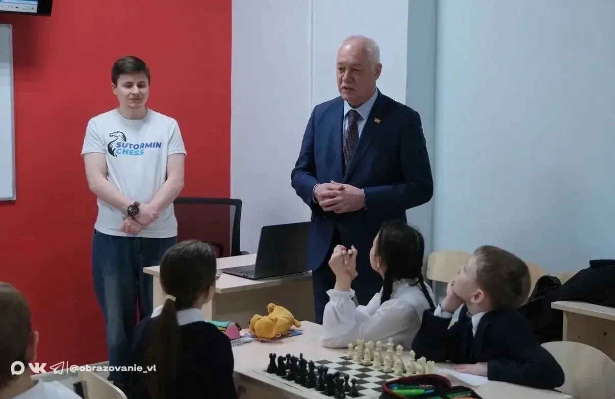 Одно из занятий по шахматам в школе №9 посетил председатель Думы Владивостока Андрей Петрович Брик. Он пообщался с педагогами и учениками, отметив важность интеллектуального развития школьников и создания современных условий для дополнительного образования.