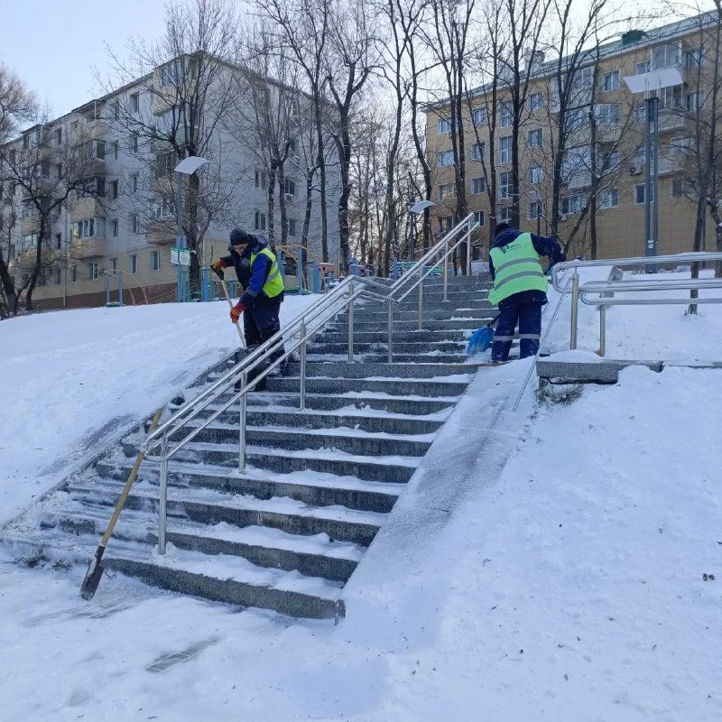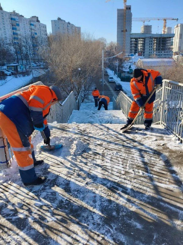 Дорожники также сегодня занимаются расчисткой тротуаров, лестниц и переходов на Фонтанной, Уборевича, Семёновской, Океанском проспекте, проспекте 100-летия Владивостока, Народном проспекте, Сабанеева, Баляева, Некрасовской, Маковского, Ивановской, Луговой, Фадеева.