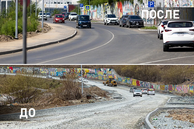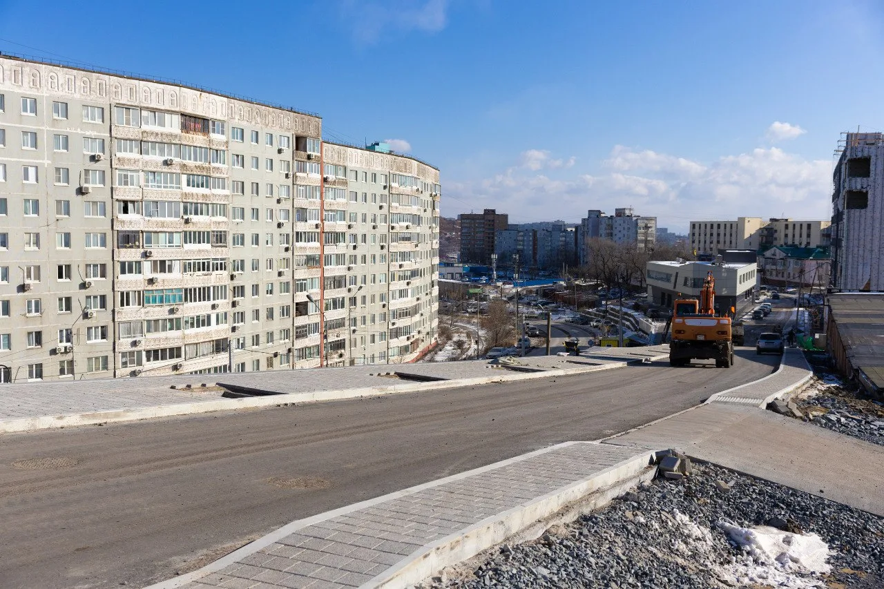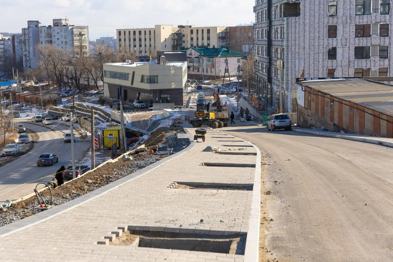 Новую дорогу в районе кёрлинг-центра во Владивостоке готовят к сдаче. Работы выполнены уже почти на 95 %.