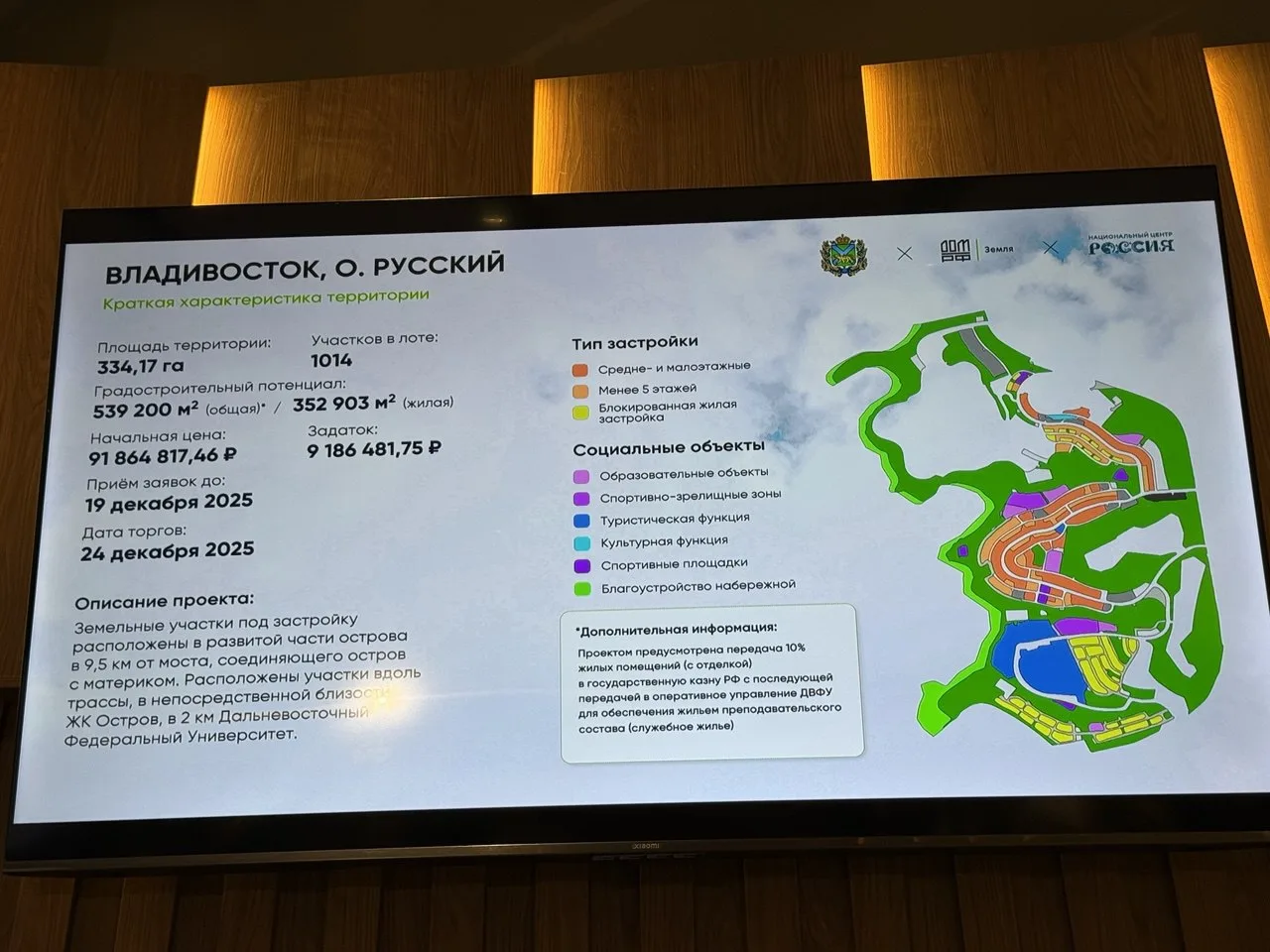 Градостроительный потенциал этой территории – почти 540 тысяч квадратных метров жилья. Дома будут не более пяти этажей. При этом 10% жилой площади планируется передать в государственную собственность для обеспечения квартирами преподавательского состава ДВФУ.