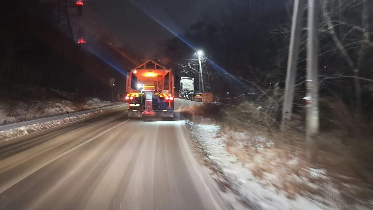 В этот час обработка дорог песко-соляной смесью ведётся на трассе Седанка - Патрокл, Русском острове, Майора Филипова, Гоголя, Океанском проспекте, проспекте Острякова, Стрелочной, Баляева, Крыгина и других улицах.