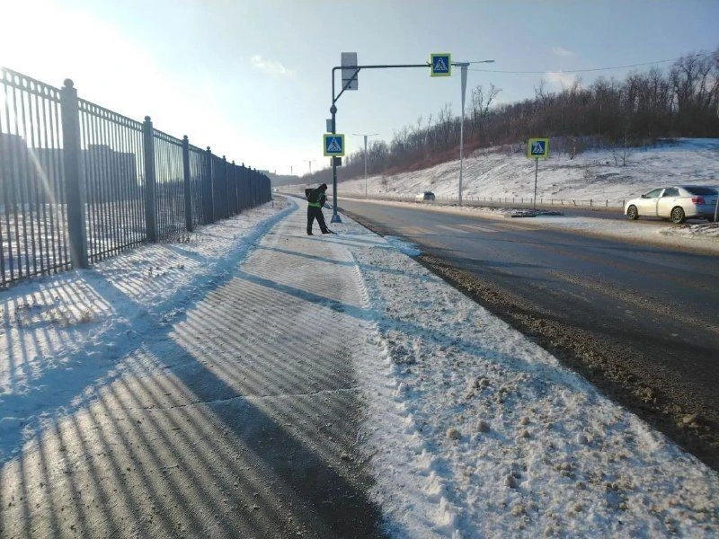 Более чем по 100 адресам сегодня днём провели обработку дорог и тротуаров реагентами, а также очистку от снега и наледи.