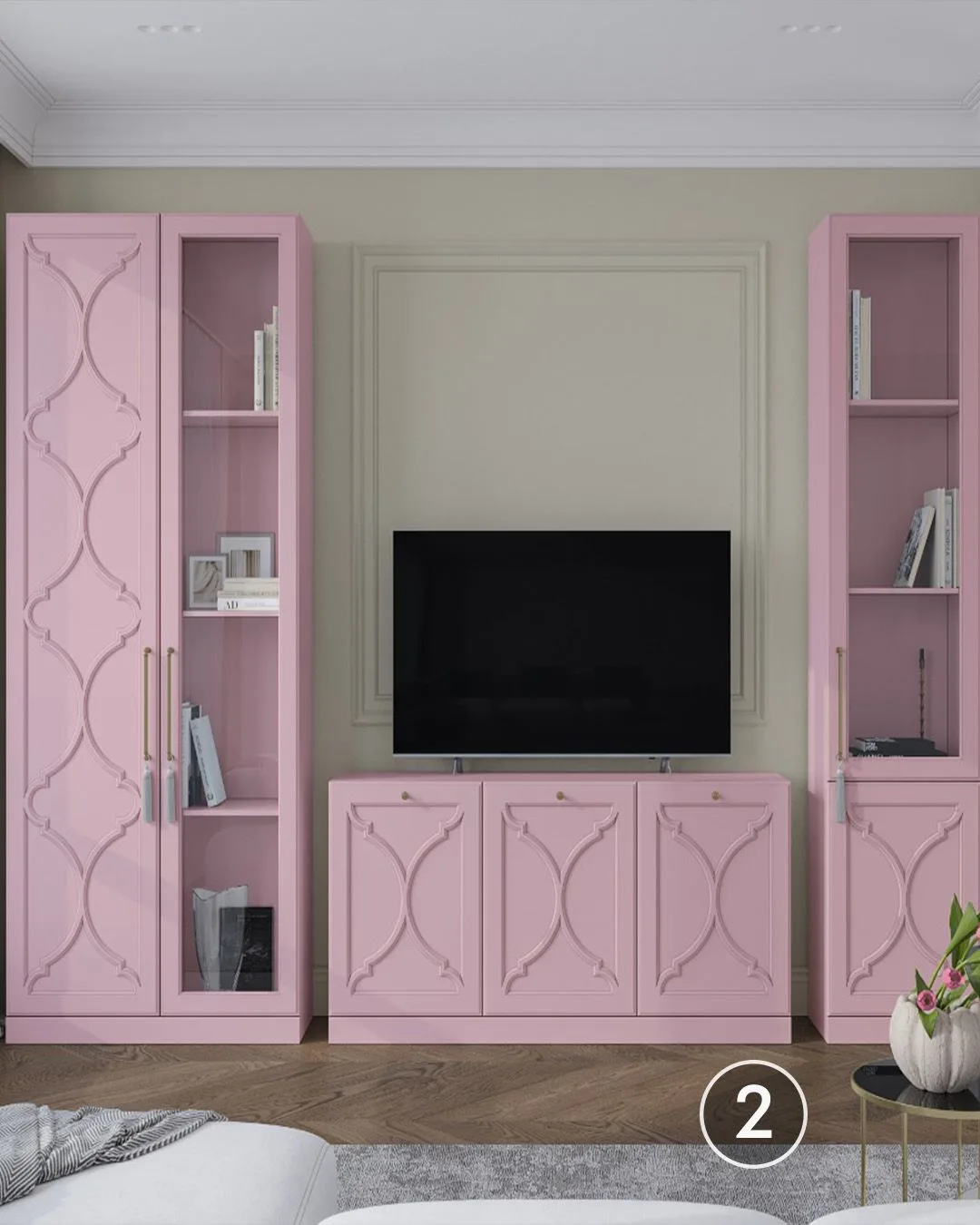 🤗Чтобы визуально «облегчить» интерьер, лучше выбирать стенки с подвесными модулями (тумбы, витрины).