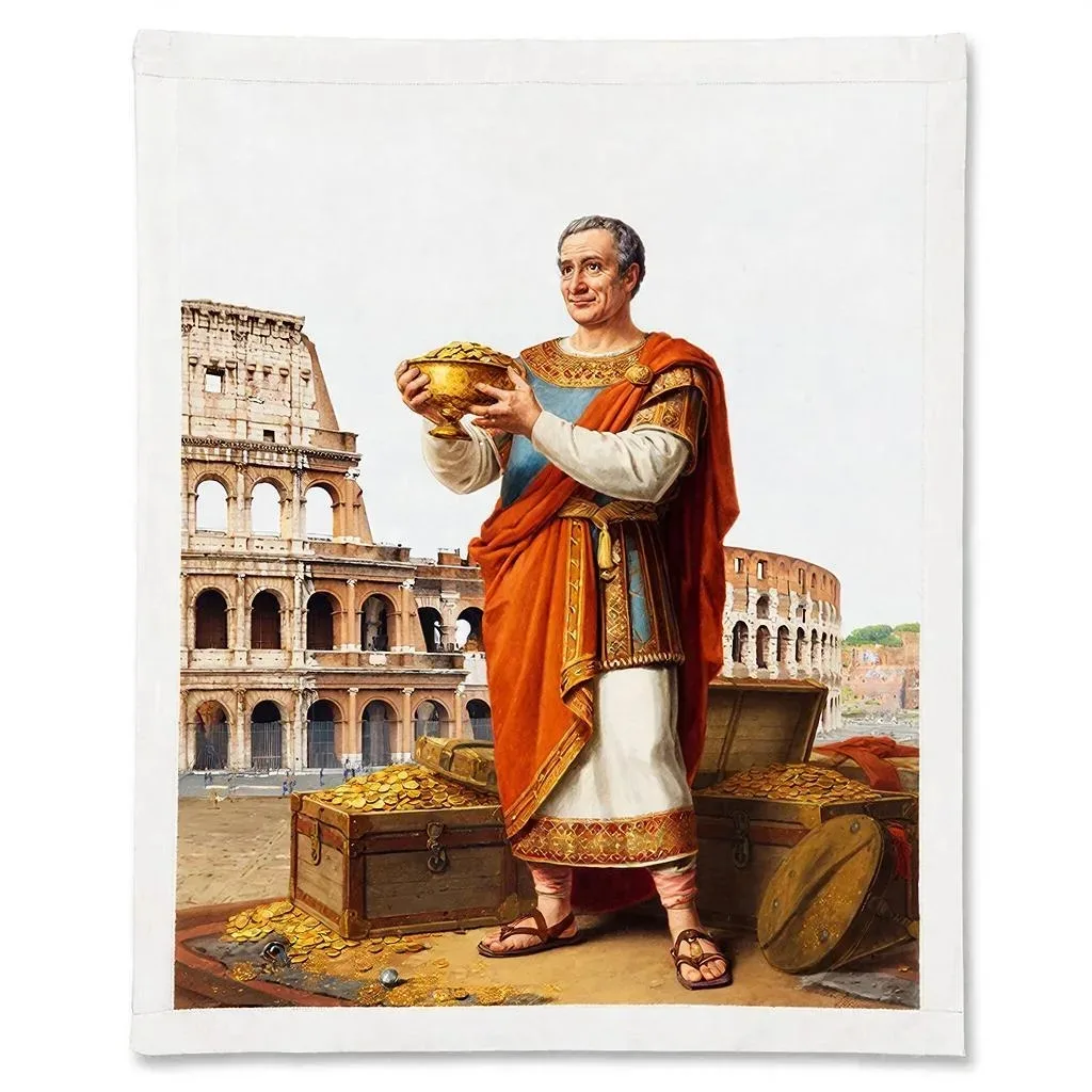 Император Веспасиан улучшает финансовое положение Рима (после гражданской войны 68 года н.э.) с помощью налогов