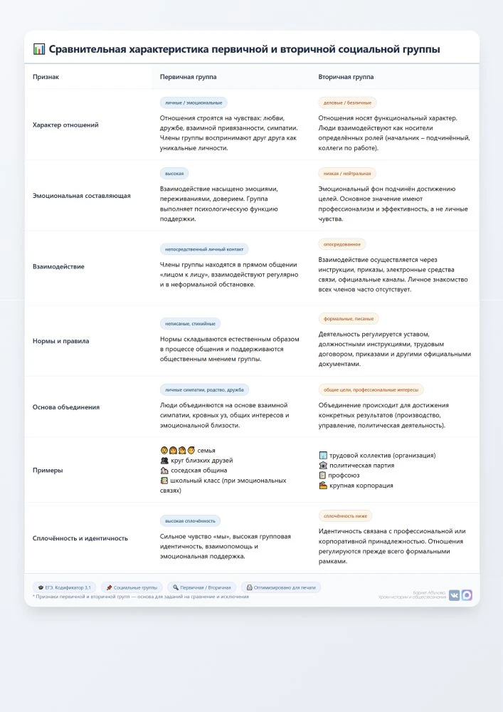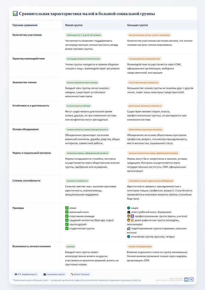 Три таблицы по социальным группам для ЕГЭ (3.1):