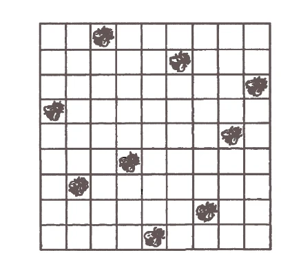 И — чудо: в понедельник 12-го все девять снова сидят так, что ни одна пара не находится на одной строке, столбце или диагонали.
