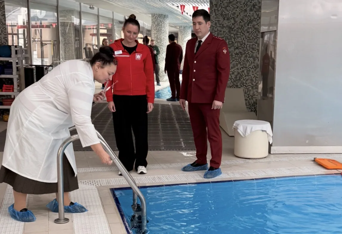 Специалисты провели осмотр помещений, проверили питьевую воду и воду в бассейнах, воздух, измерили температуру, взяли смывы с оборудования и поверхностей.